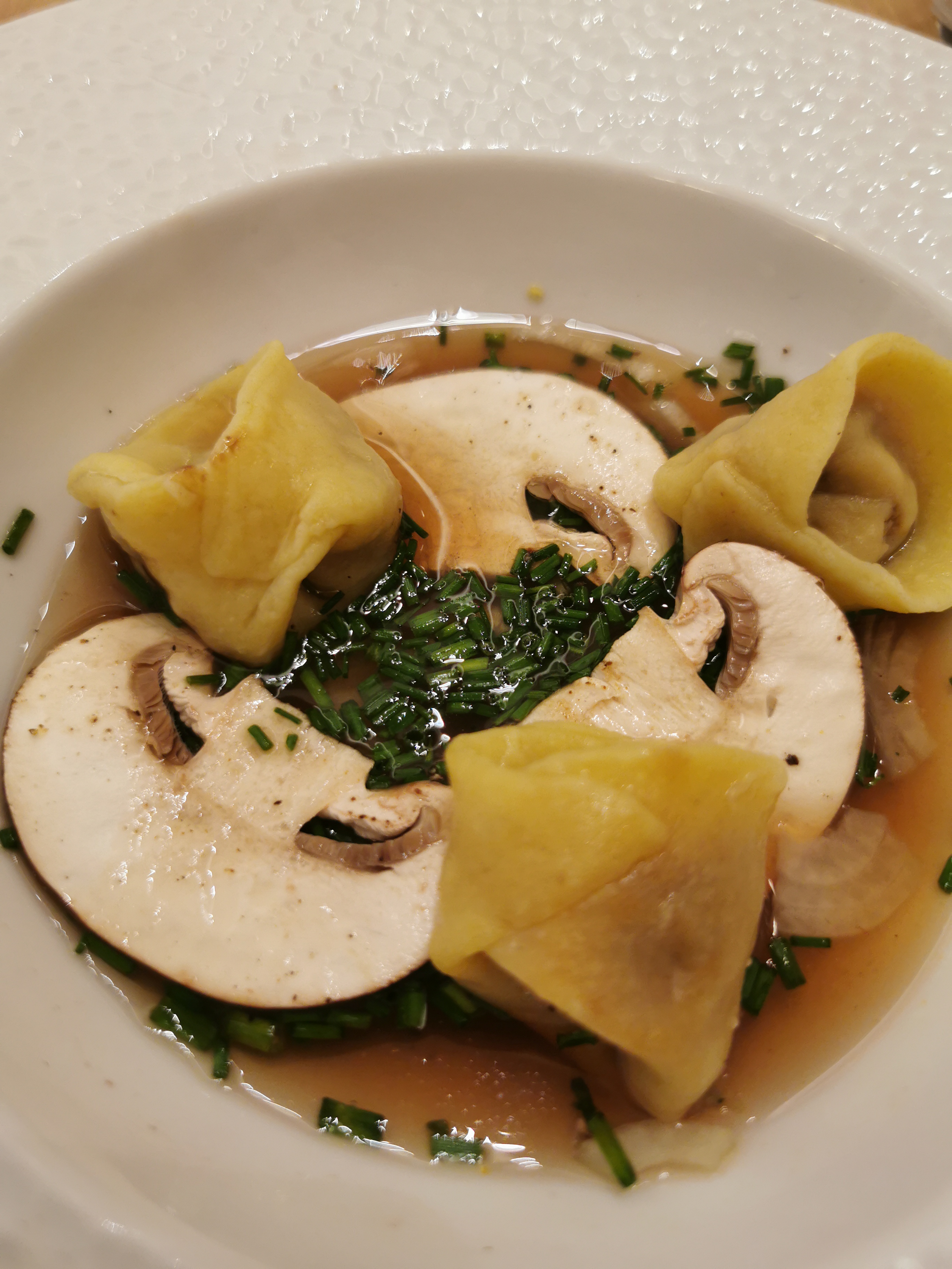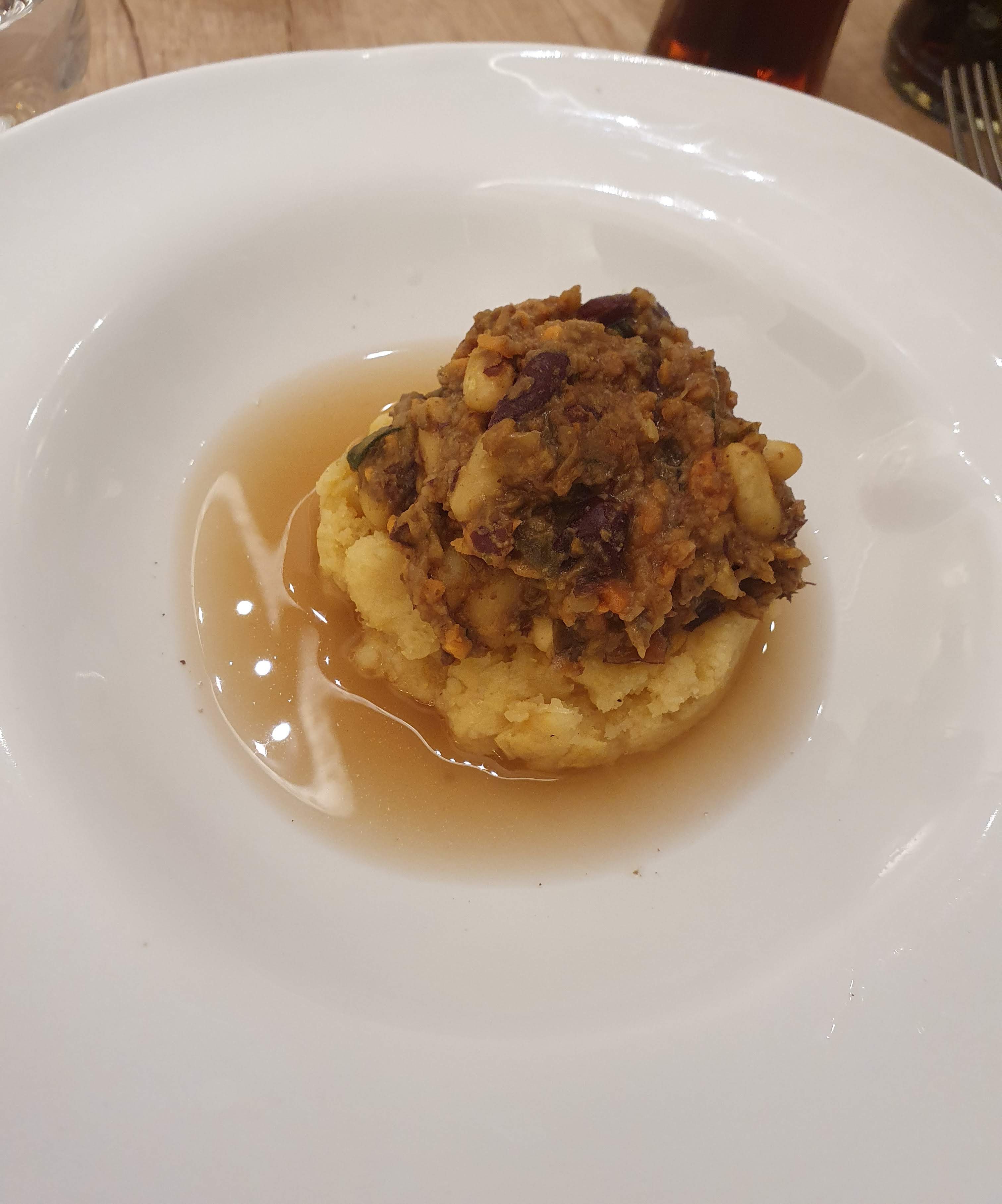C’est délicieux et le lieu est charmant. Pas d’option végétarienne en plat ce soir là mais accord pour modifier un plat, et même remplacer le jambon par un légume. Peut-être une idée pour des prochaines recettes 100% végé ? 😉