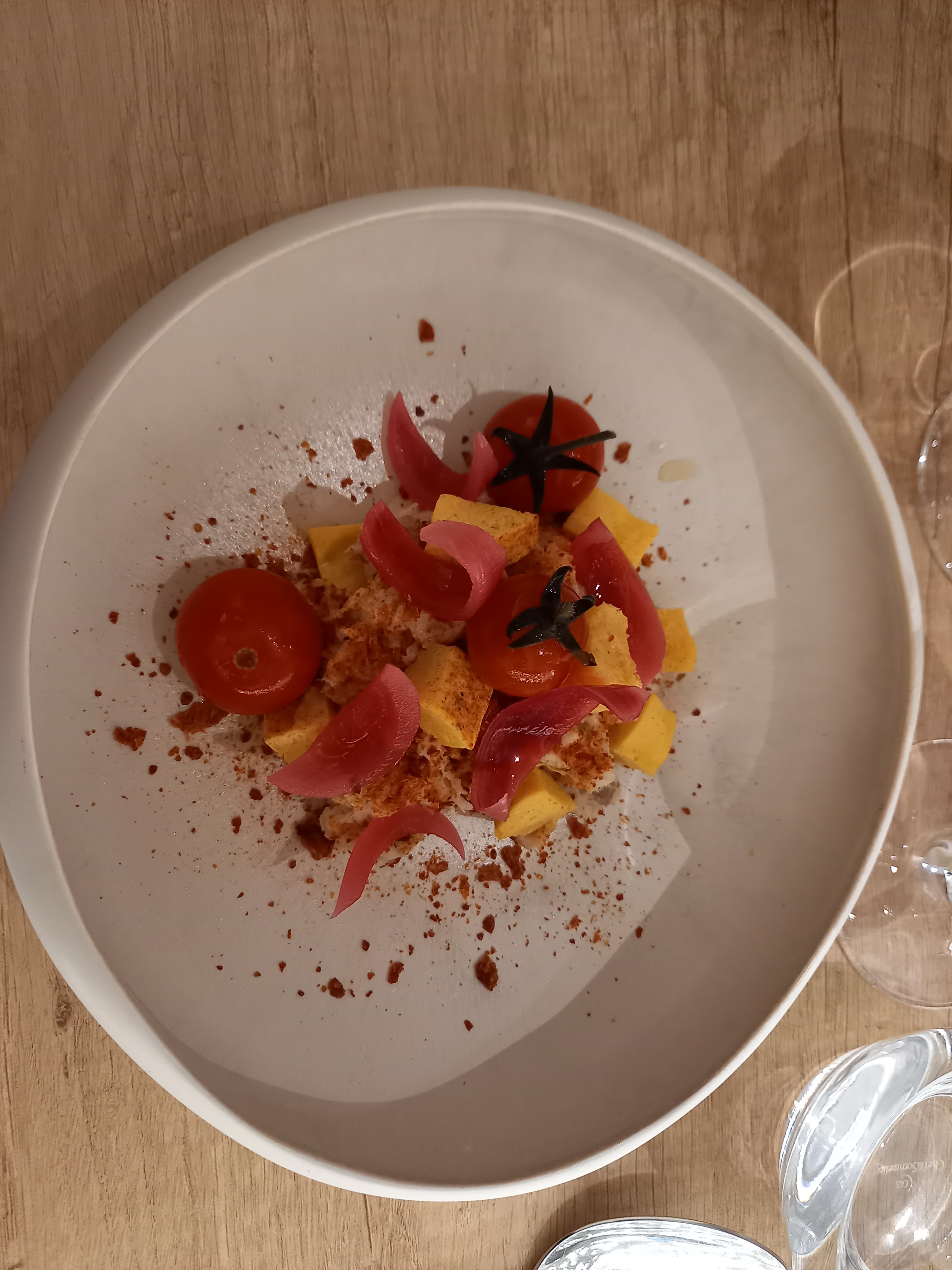 Magnifique, un régal pour les papilles... De l'entrée au dessert en passant pas l'entre mets, totalement excellent. Du goût un mélange de saveurs de la longueur en bouche des textures des couleurs une assiette esthétique, vraiment que du bonheur. Un budget très raisonnable avec les vins, carte courte mais des bons conseils d'associations. Le service est top la salle est cosi et jolie. Je recommande le midi comme le soir, une très bonne adresse pour se faire plaisir. A vos papilles et bon appétit 😋.