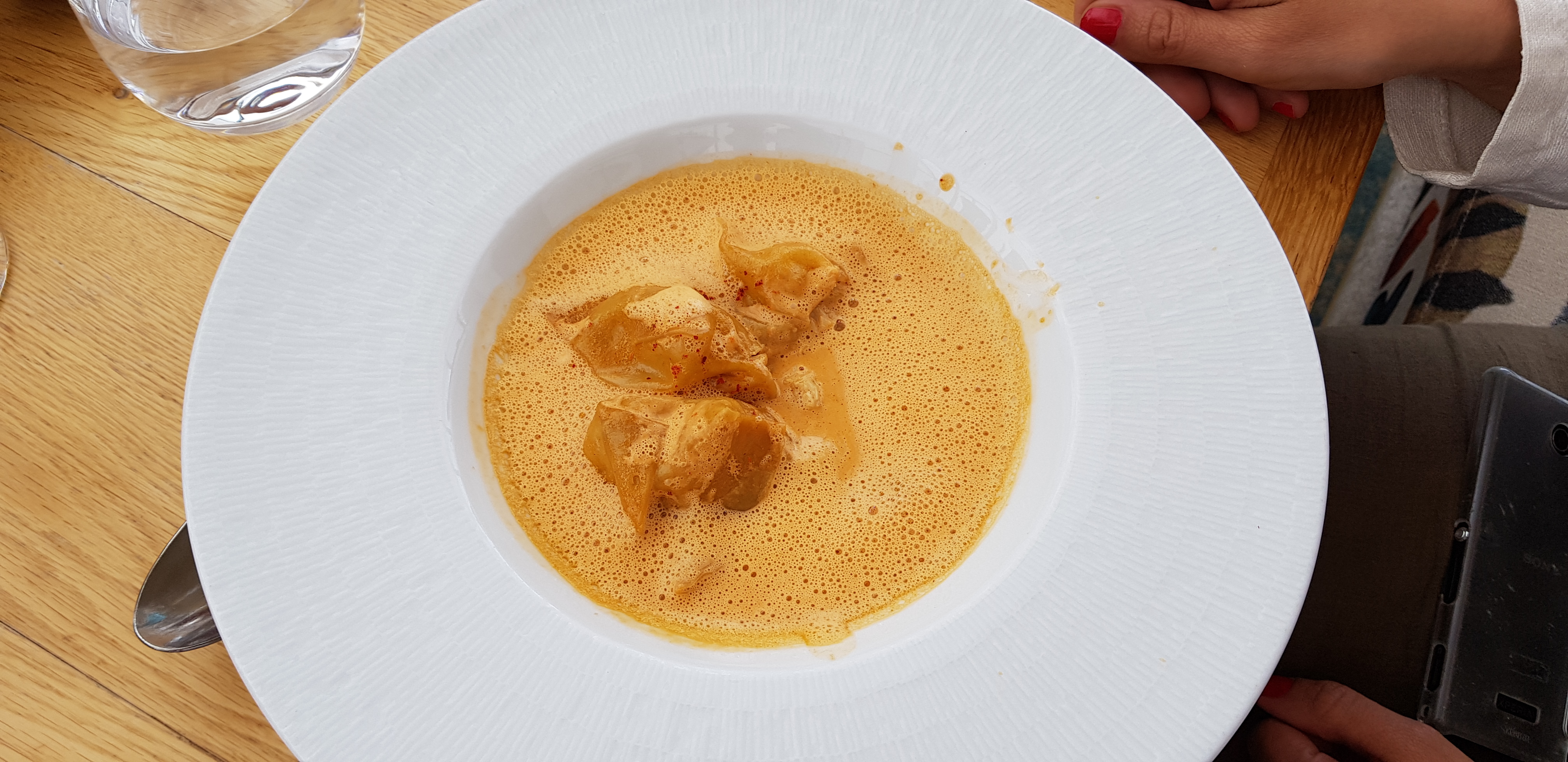 Dîner à 2. Superbe expérience. Les plats étaient élaborés et excellents. Accords parfaits entre les saveurs et les textures. Accueil souriant, sympathique et service efficace. Je ne comprends pas les mauvaises review, peut-être dues aux prix très.... « parisiens ». Nous avons passé un excellent moment !