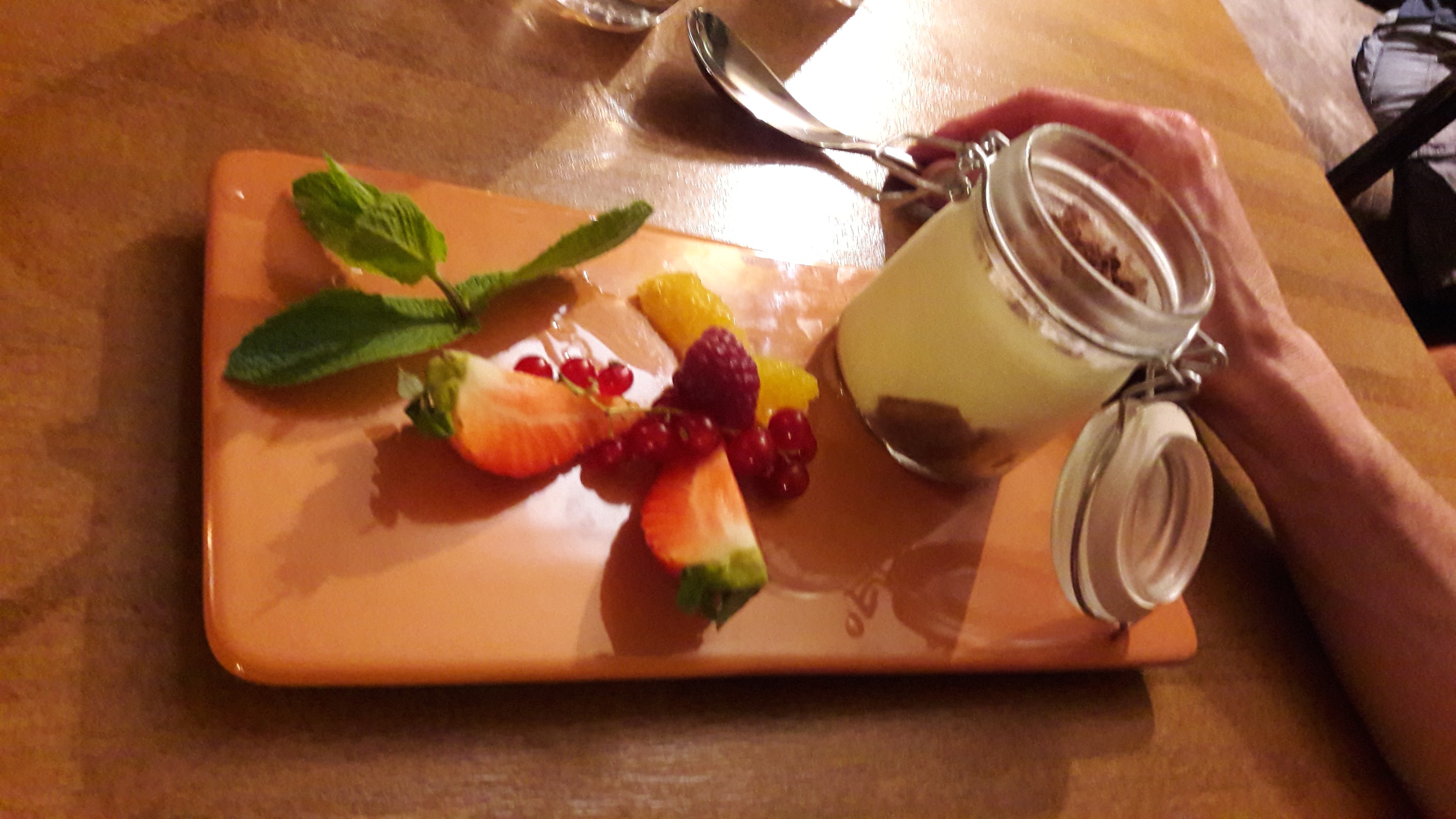 Nous ne vous disons pas au revoir, nous vous disons à bientôt. Franchement tout était très bien le cadre de service les plats entrée plat dessert rien à redire. L’arrivée du dessert c’est fait qu’elle peut attendre, mais ce n’est pas bien grave au final.