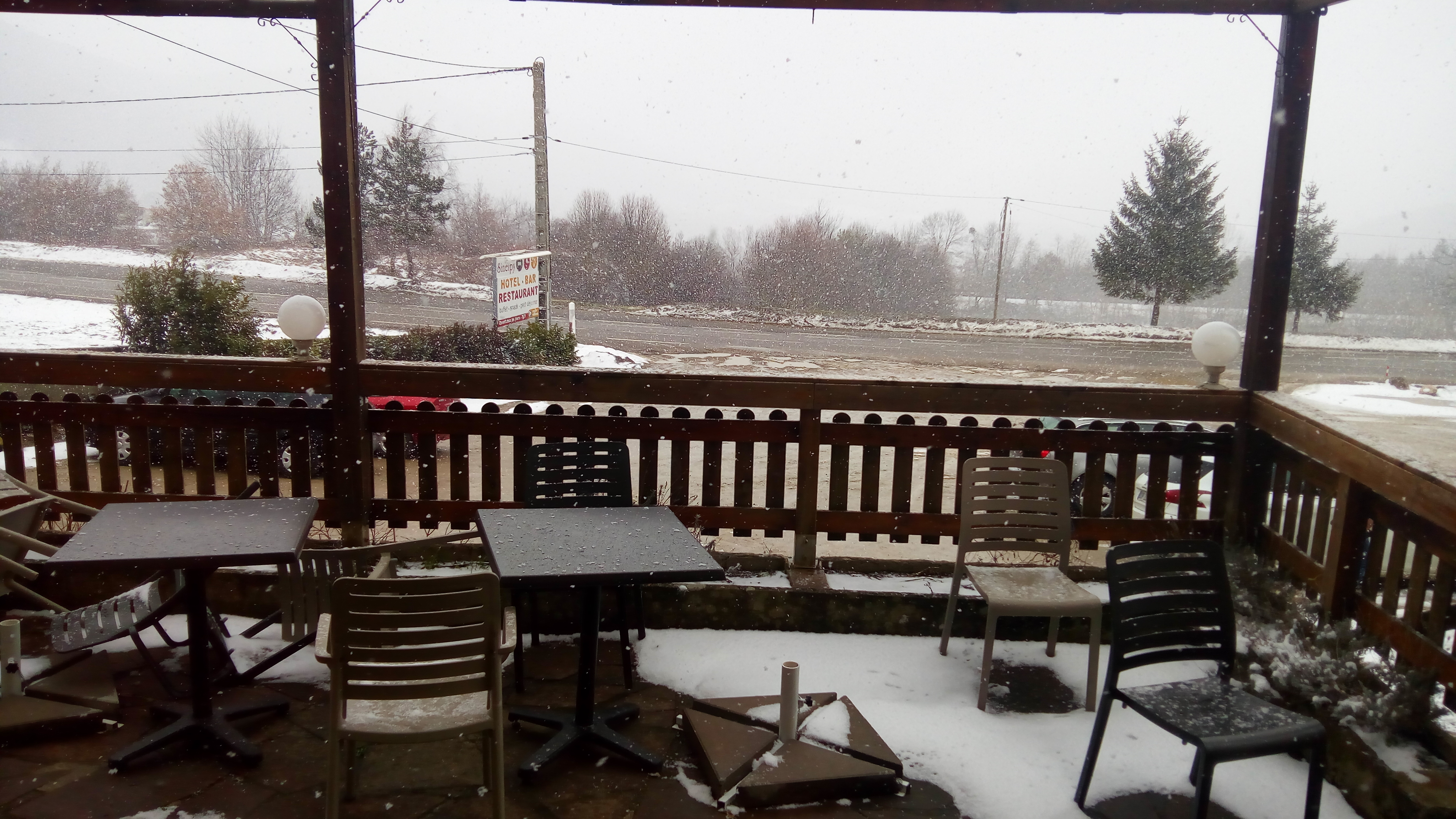 Un arrêt sur la route du retour, pour un bon petit déjeuner sur la terrasse avec une vue sur un magnifique paysage, le patron est sympathique et nous a très bien reçu.