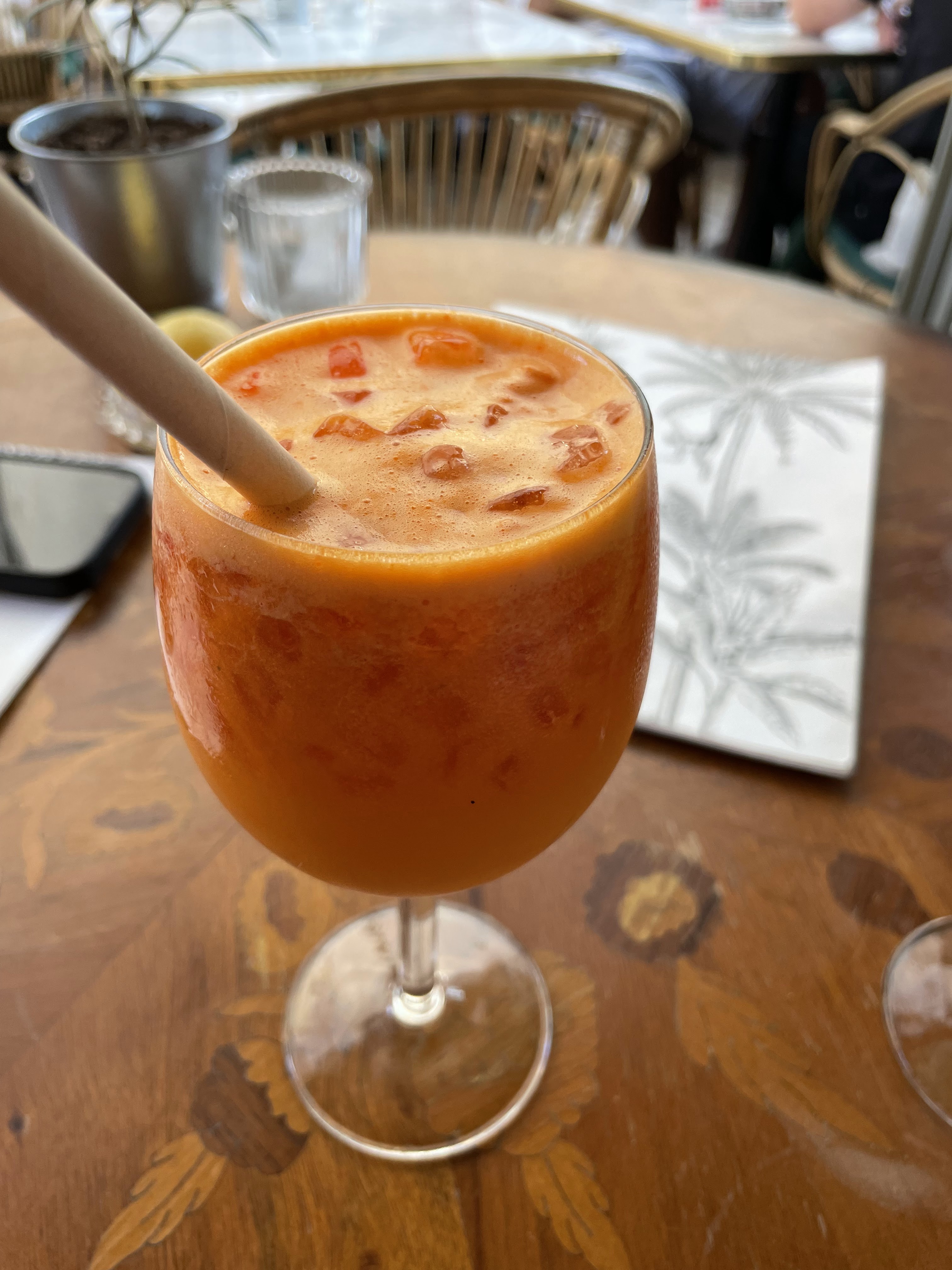 Sur les conseils d’une amie, nous avons découvert ce bar restaurant très bien situé sur le cours Mirabeau, nous avons été rapidement accueilli et sommes allés de surprise en surprise. Tout d’abord, l’accueil était chaleureux, nous avons rapidement été servi, et je suis allée me balader à l’intérieur du restaurant, et j’ai découvert un très beau restaurant à l’intérieur ainsi qu’une terrasse ombragée au fond du restaurant. Dans leur cour, c’est juste magnifique en famille ou entre amis. N’hésitez pas à réserver ! Nous avons prit des jus detox carotte ou concombre une préférence pour le carotte tout deux ne sont ps sucrés!