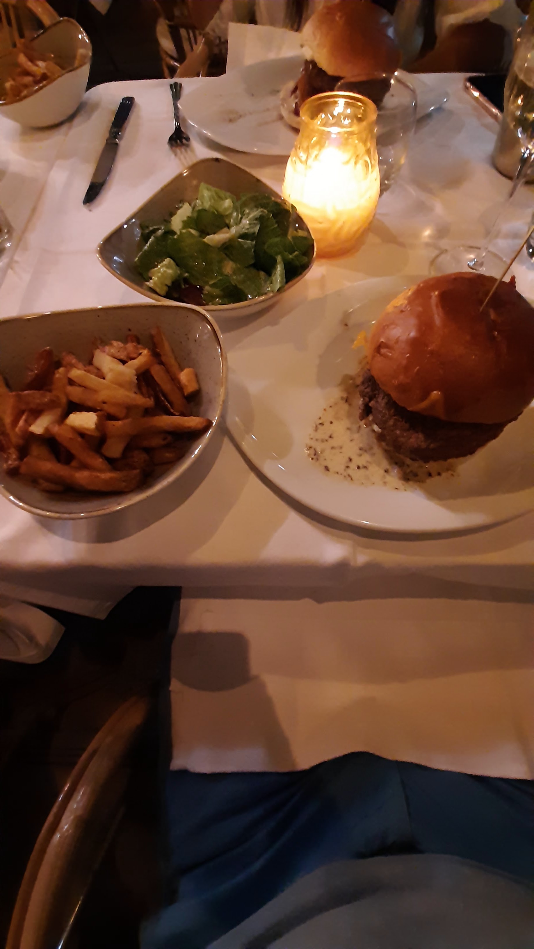 Super comme d'habitude. Nous aimons venir ici. Mais dans un établissement aussi chic, j'aimerais voir une salade César classique - avec du poulet nature - non recouverte d'un enrobage croustillant. Il s’agit d’une nouvelle tendance dans les restaurants qui devrait disparaître aussi vite qu’elle est arrivée. De plus, le hamburger devrait contenir moins de sauce - il est pratiquement impossible de le manger et tout devient détrempé, ce qui n'est pas agréable. Mais Singe Vert est toujours fortement recommandé.