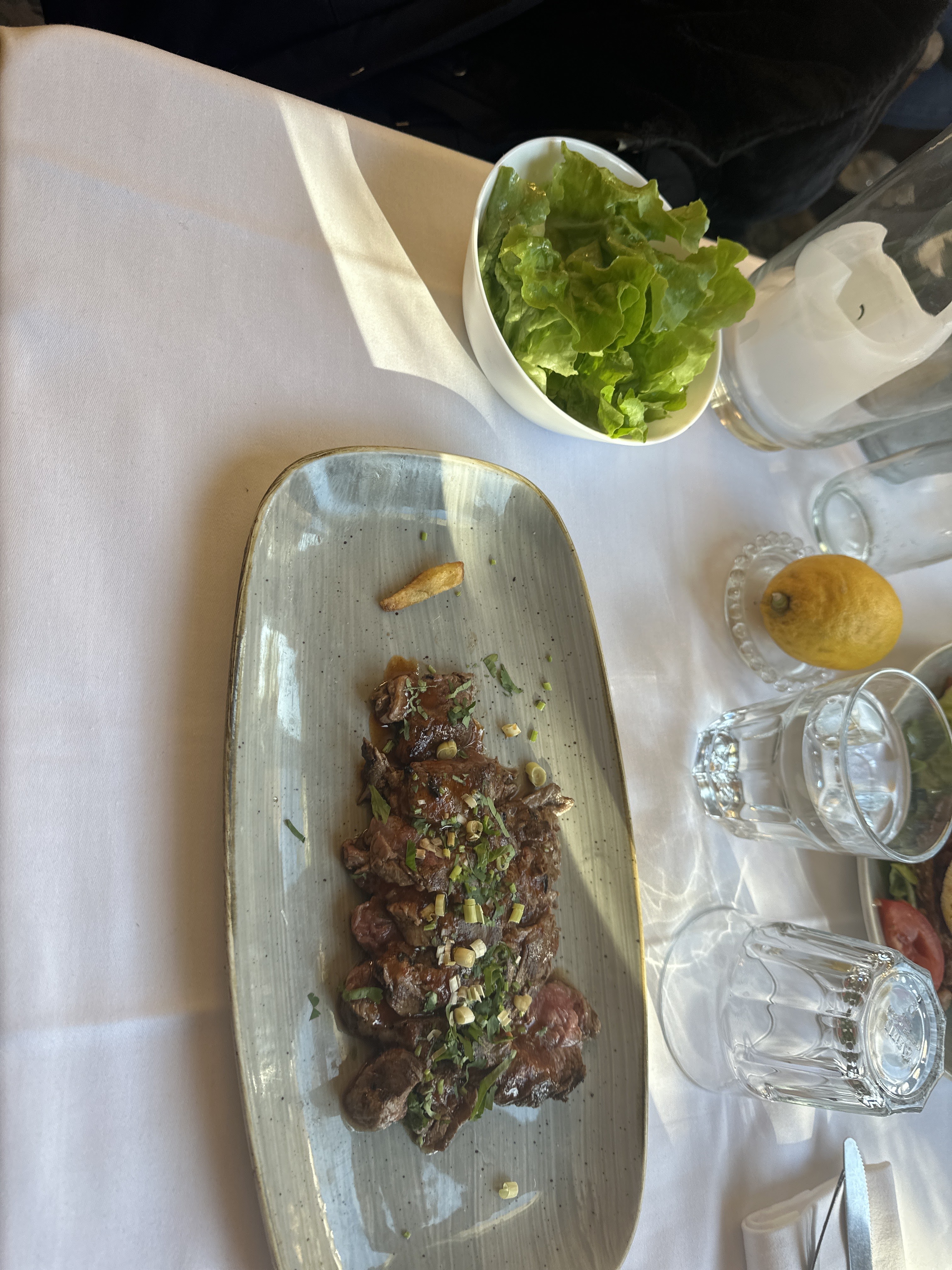 Accueil très agréable, un tartare de bœuf excellent, et le serveur nous a même offert un digestif alors que nous n’étions que deux, j’ai apprécié le geste.