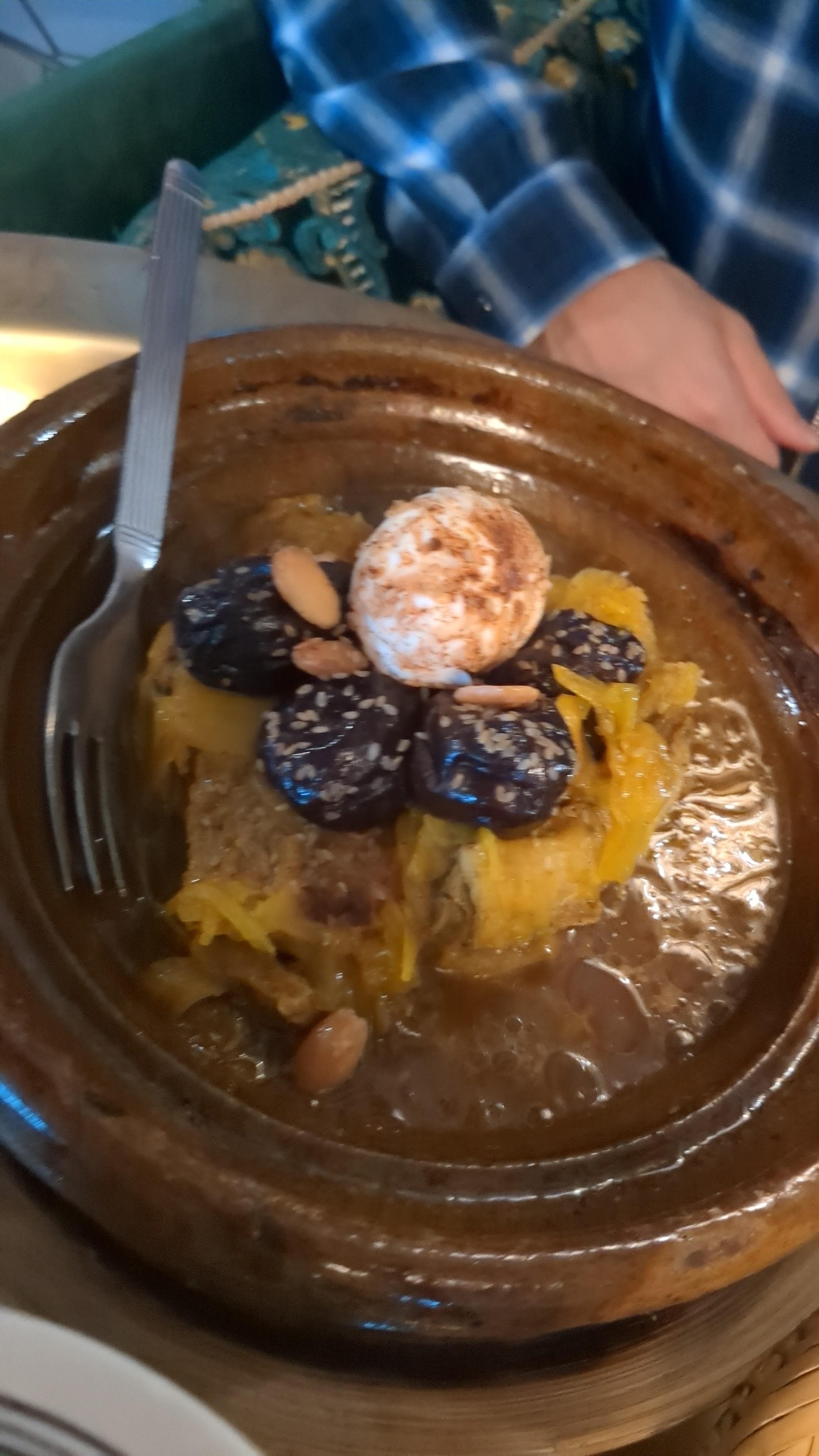 Bonjour à tous. De mon avis , en arrivant dans ce restaurant marocain ce qui m'a attiré en premier c'est la décoration rustique ce mariage en la pierre et les poutres en chêne ainsi que les tables j'ai trouvé que cela rapellait le folklore marocain, ensuite en ce qui concerne entrée plat desert j'ai trouvé que les légumes étaient vraiment frais goûteux et relevé en épices la viande cuite à point juste ce qu'il faut, enfin je tiens à souligné le bonne accueille en arrivant , et le service qui a été rapide par le serveur qui est au top .