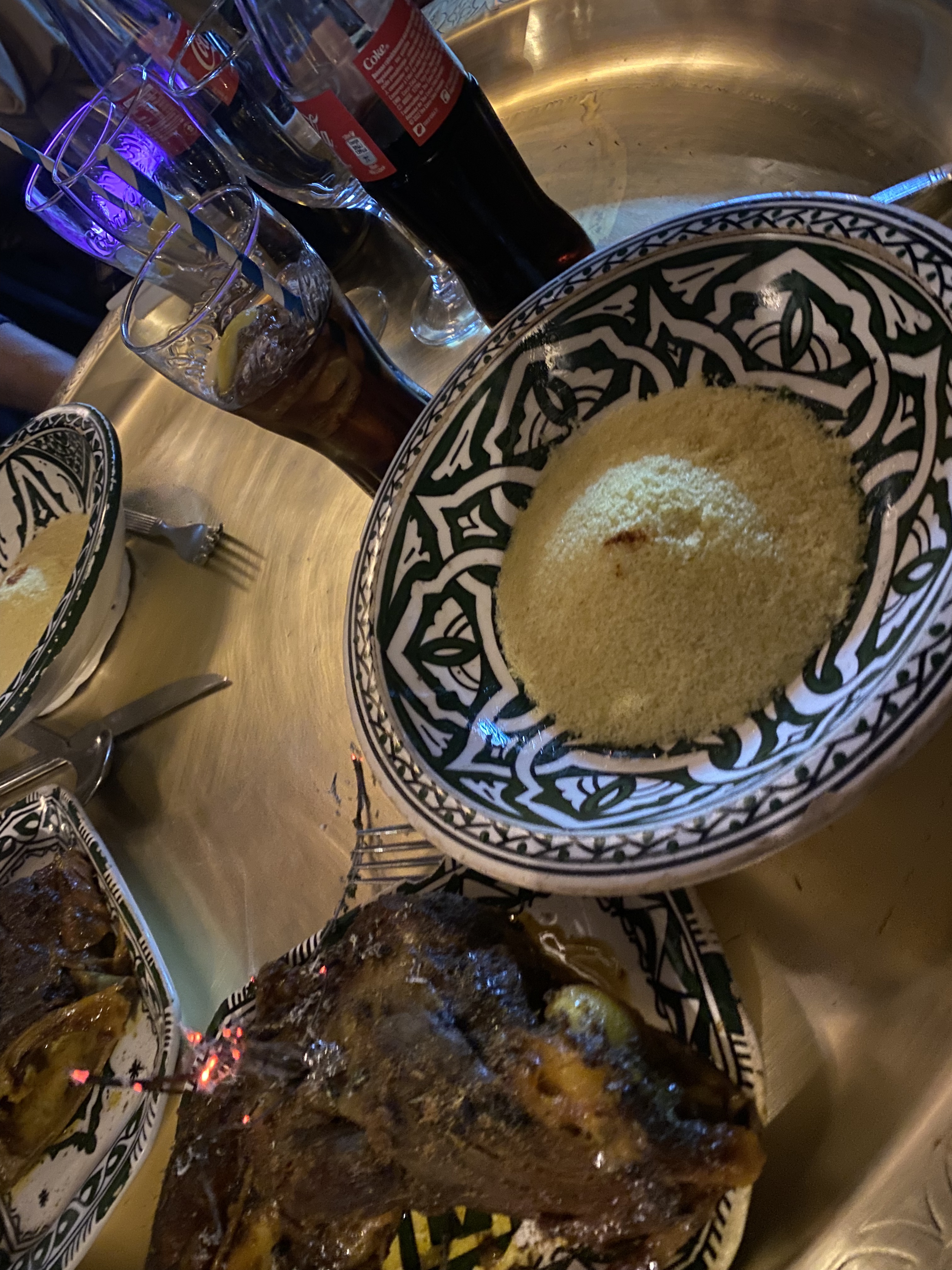 Belle décoration, quoique le choix de plateaux en laiton comme tables soit périlleux à l'usage, nous nous sommes régalés de couscous royal, dont les viandes dont succulentes, spécialement les viandes d'agneau. Les parfums sont authentiques, l'ensemble est très goûteux, assez copieux, et nous laisse un excellent souvenir, les portions sont généreuses, le service agréable et précis. Nous étions très bien assis. Un bon point pour une soirée sympa, plus de lumière serait bienvenue. Félicitations au chef et au service.