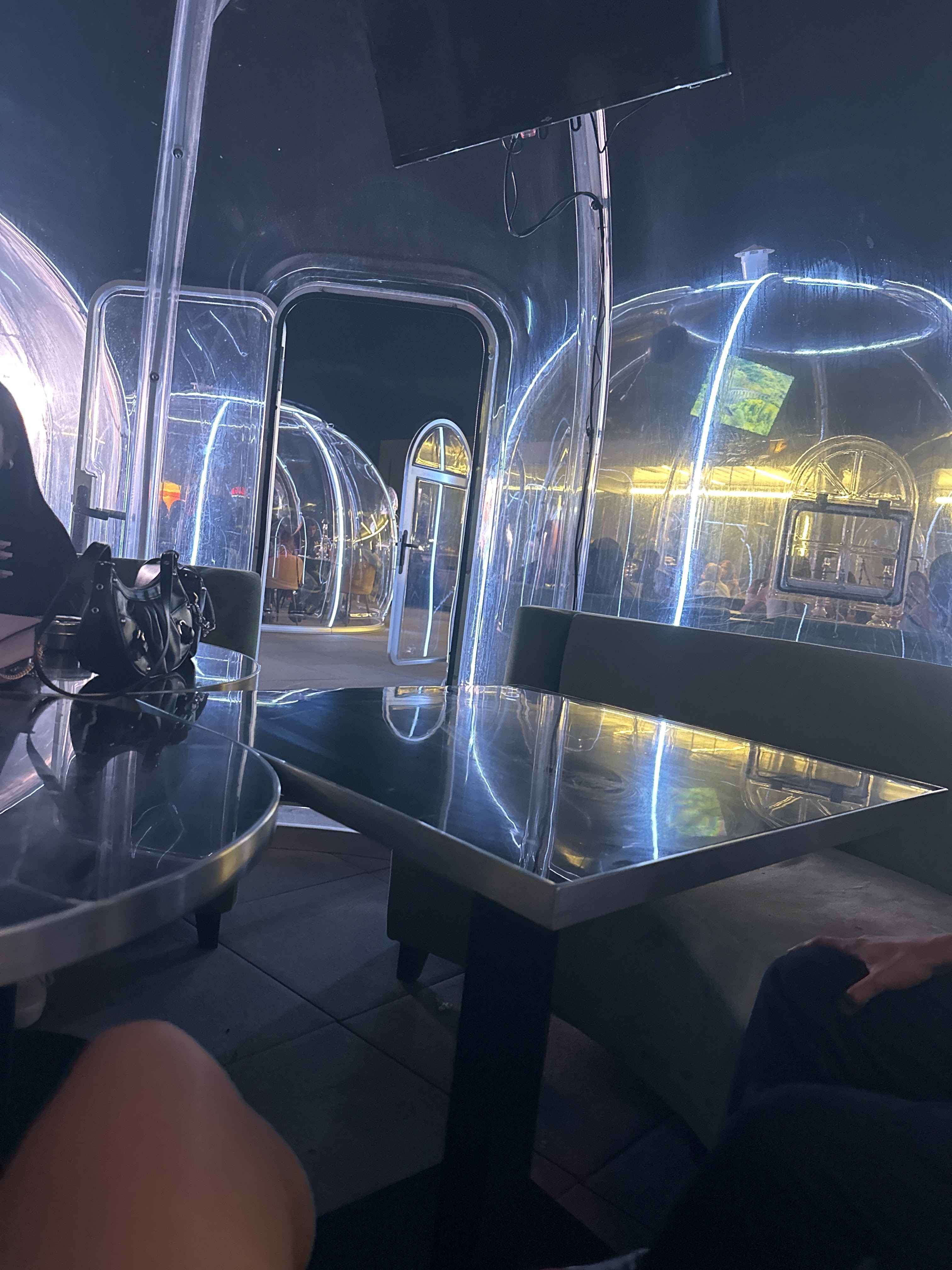 La nourriture est bonne mais la présentation est très peu travaillé ! En ayant vu la vidéo sur insta je pensais être dans un vrai restaurant mais j’ai plus eu l’impression d’être dans un bistro ! De plus , pour ceux qui souhaitent être dans les bulles , vous devez supporter la chicha des autres . Quand même cher pour c’est !