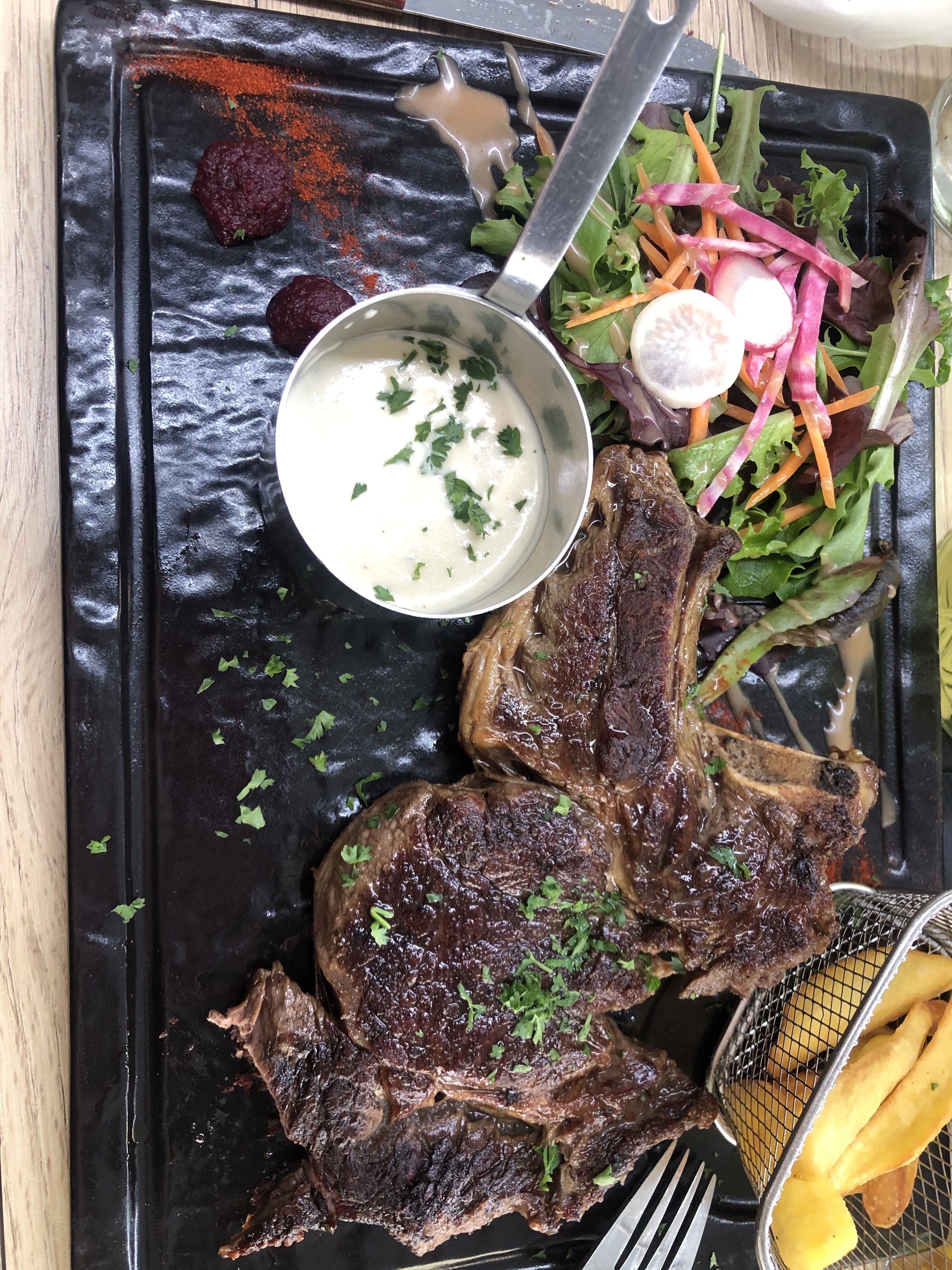 Un restaurant vraiment bien, vous pouvez y manger tranquillement au bord du port de jard. Nous avons pris une côte de boeuf de 400/500g à point, la cuisson était parfaite. Tout cela avec une bonne bouteille de chinon. Avec un désert généreux. L accueil très sympa et service. A refaire dès que possible. Je recommande vivement ce restaurant.