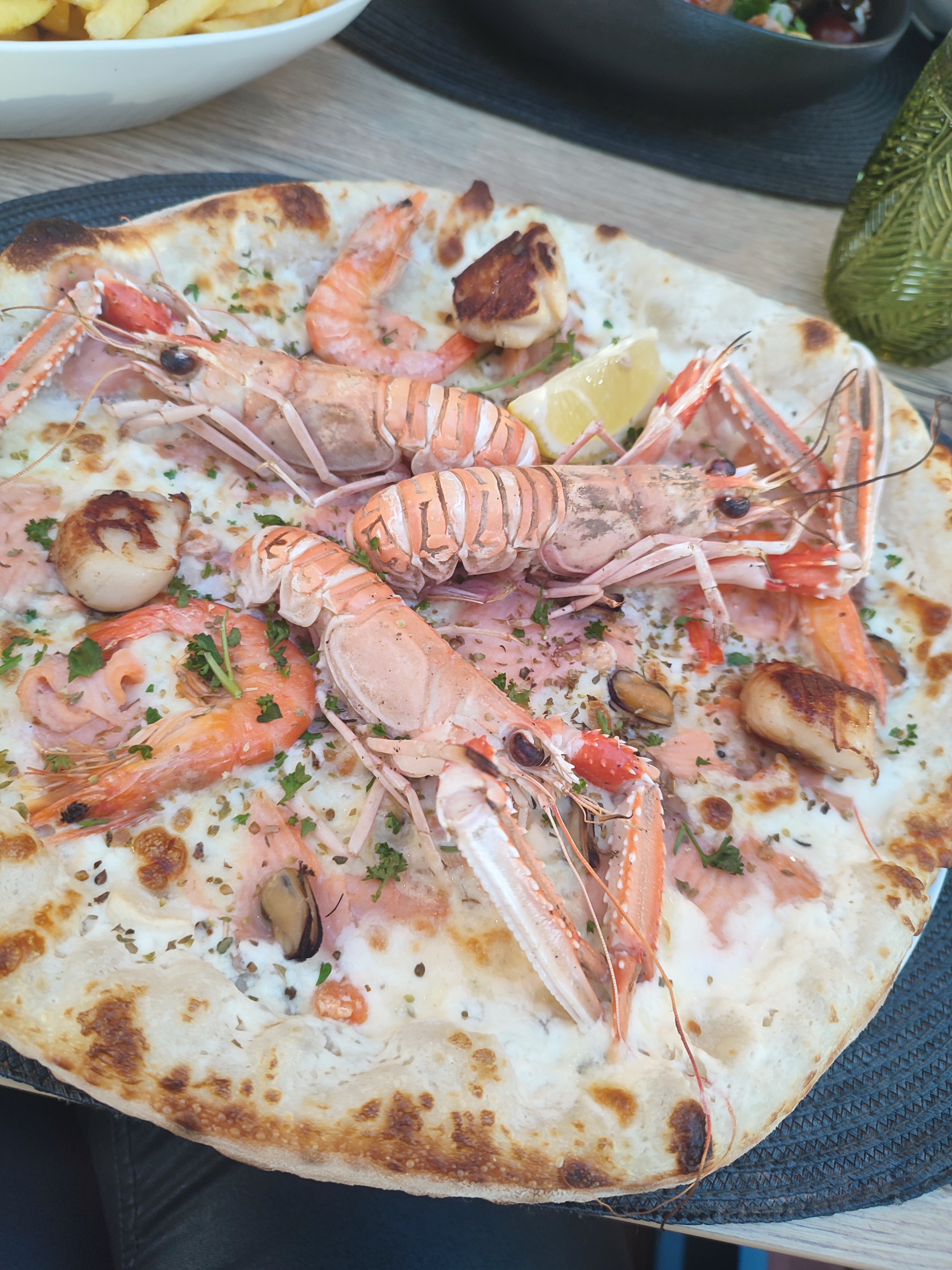 Serveurs très gentils et avenants on a mangé des pizzas énormes et très bonnes...on a pas pu finir....on peut les emporter....en face du port...cadre magnifique...on reviendra