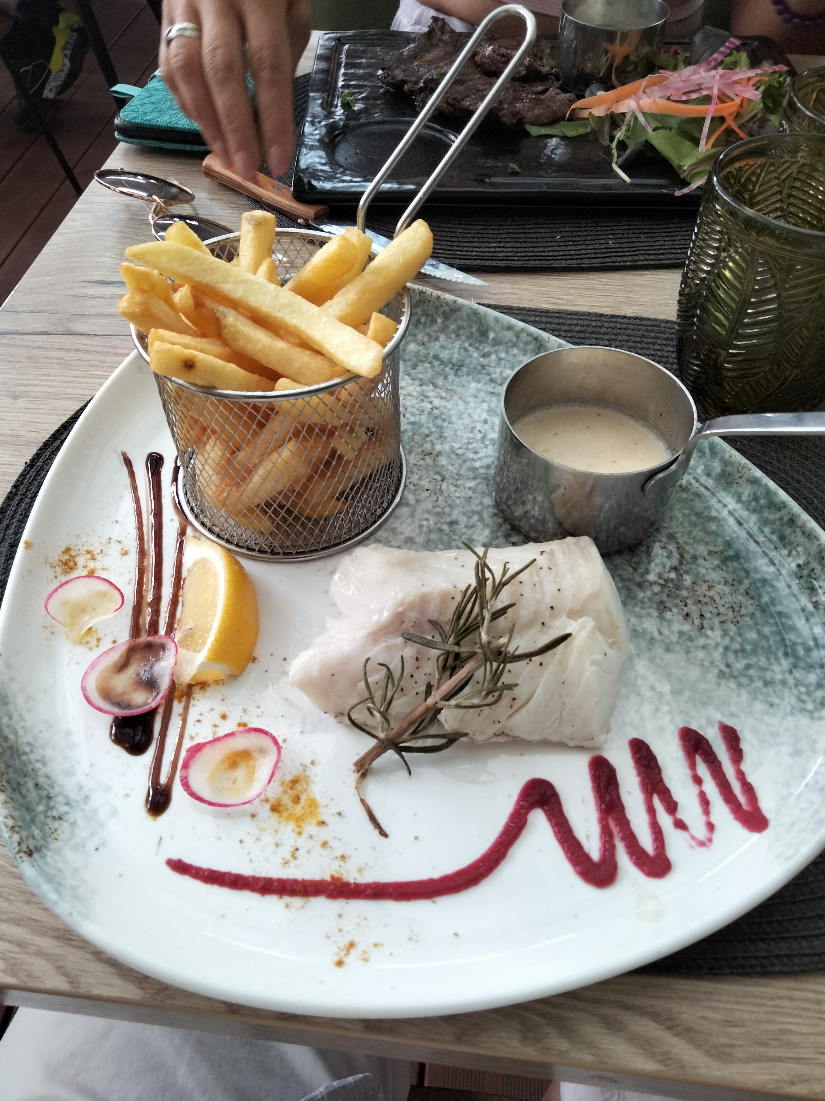 Accueil sympathique mais tarifs trop élévés pour des plats de boîte : asperges en bocal (ne pas en proposer en août serait une meilleure idée !), salade sortie du sachet, pain de burger industriel... mention positive en revanche pour le menu enfant (fish and chips).