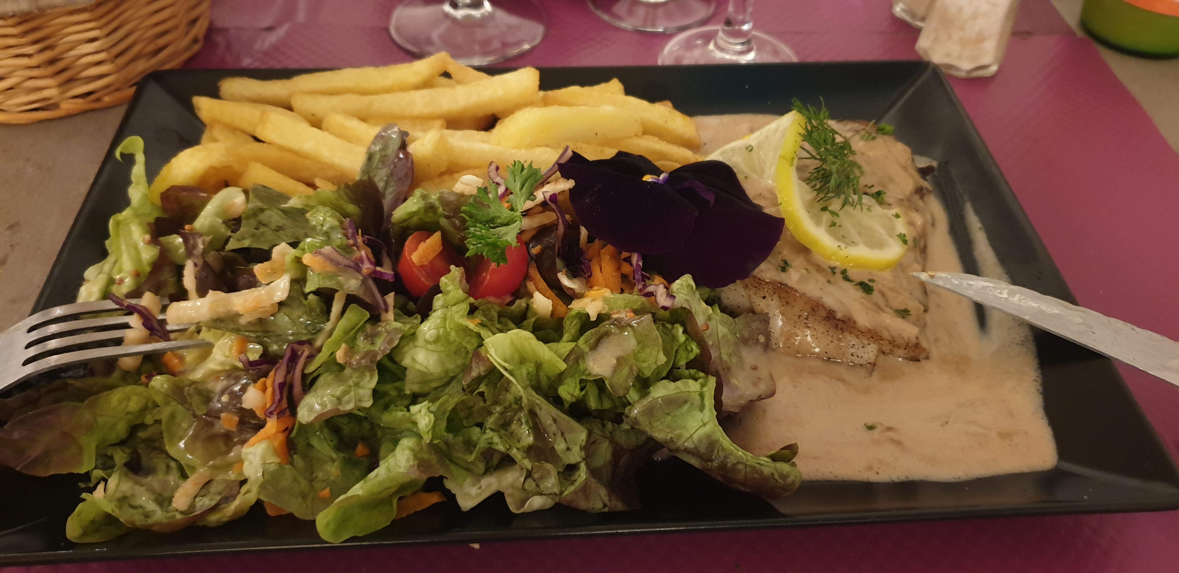 Bon accueil service agréable assiette bien garnie frites maison