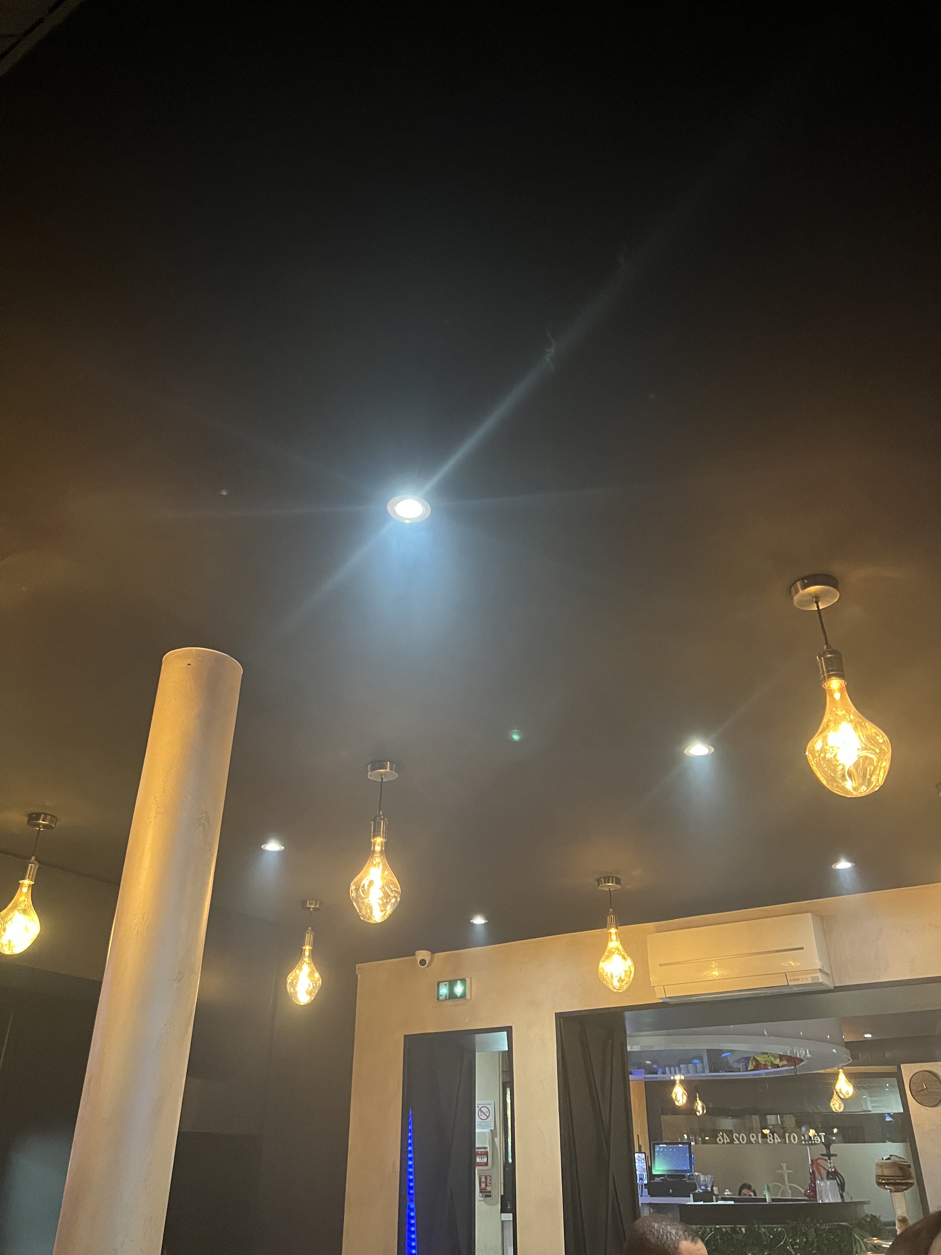 La déco est apurée.. le service aussi bon que les menus copieux et aux présentations très soignées... Les narguilés sont de qualités et les appareils neufs. L'équipe est d'une bienveillance notoire.. des valeurs humaines qui sont naturelles et pas seulement commerciales comme on peut malheureusement le ressentir ailleurs.. Un concentré de réussite dans un cadre vraiment agréable. L'espace est grand...ceux qui aiment travailler à l'extérieur peuvent s installer et vaquer à leurs activités ( wifi disponible et de nombreuses prises usb ou standards pour les pc) tout en passant un moment de détente. L'ambiance est aussi soignée...des musiques d'ambiances au bon volume qui sont adaptées aussi bien a un cadre professionnelle que pour celui d'un repas entre amis, famille ou en couple... Ils ont su allier différentes raisons qui vous pousseraient à vous y rendre... Les enceintes ont été adaptés pour propager juste assez de volume...des musiques sélectionnées avec soins qui s'aclimatent parfaitement aux interactions avec vos clients ou vos amis à table. Egalement idéal pour vos afterworks ou vos diners d'affaires. Un grand merci pour toutes ces prestations de premier ordre. J'espère à très vite.