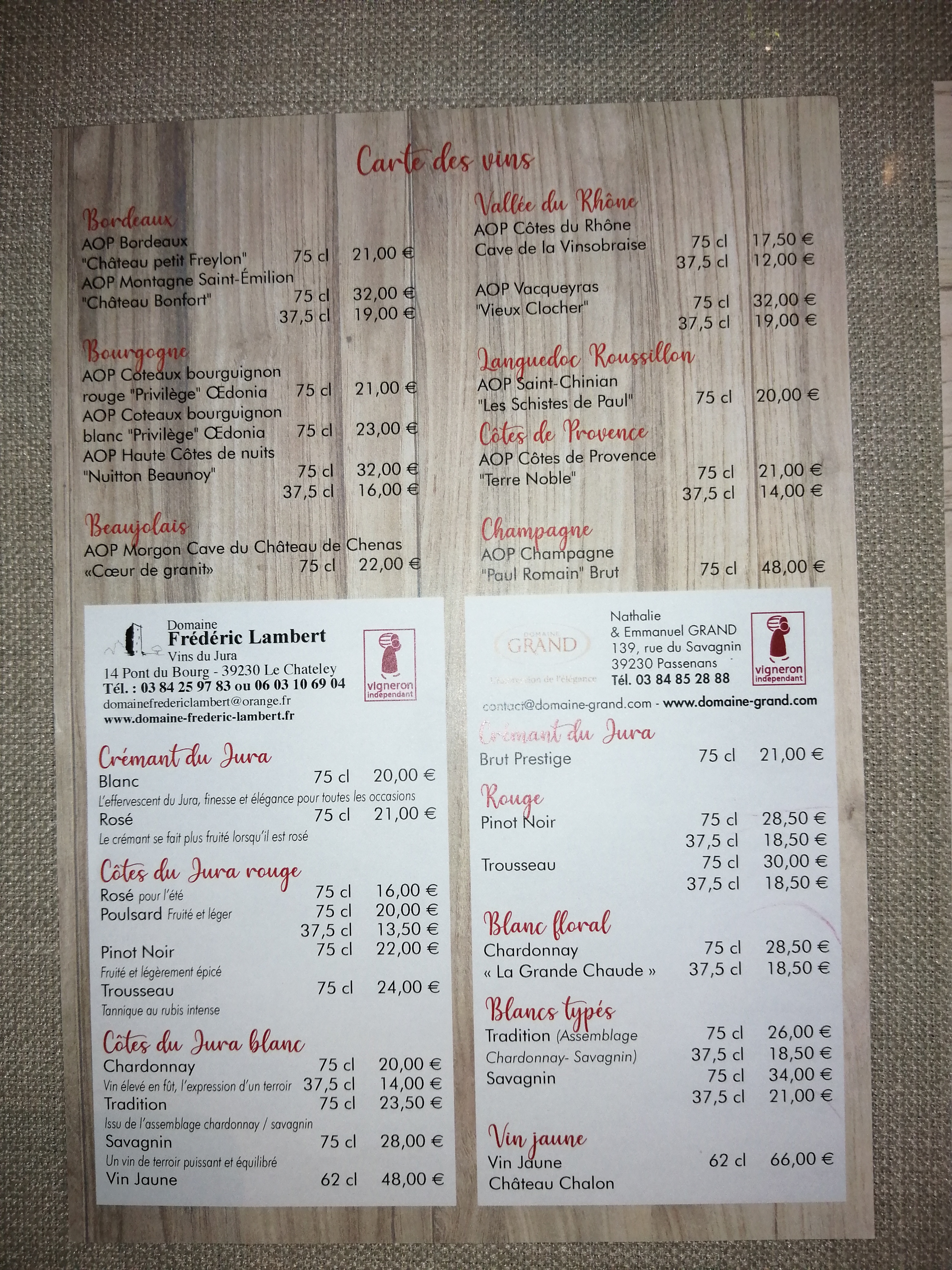 Repas excellent. Croûte aux morilles, Filet de St Pierre, entrecôte sauce au vin jaune et morilles + assiette de fromages puis desserts. N'attendez pas l'hiver et la neige pour déguster les plats à la carte. Réservez et Allez-y vite.
