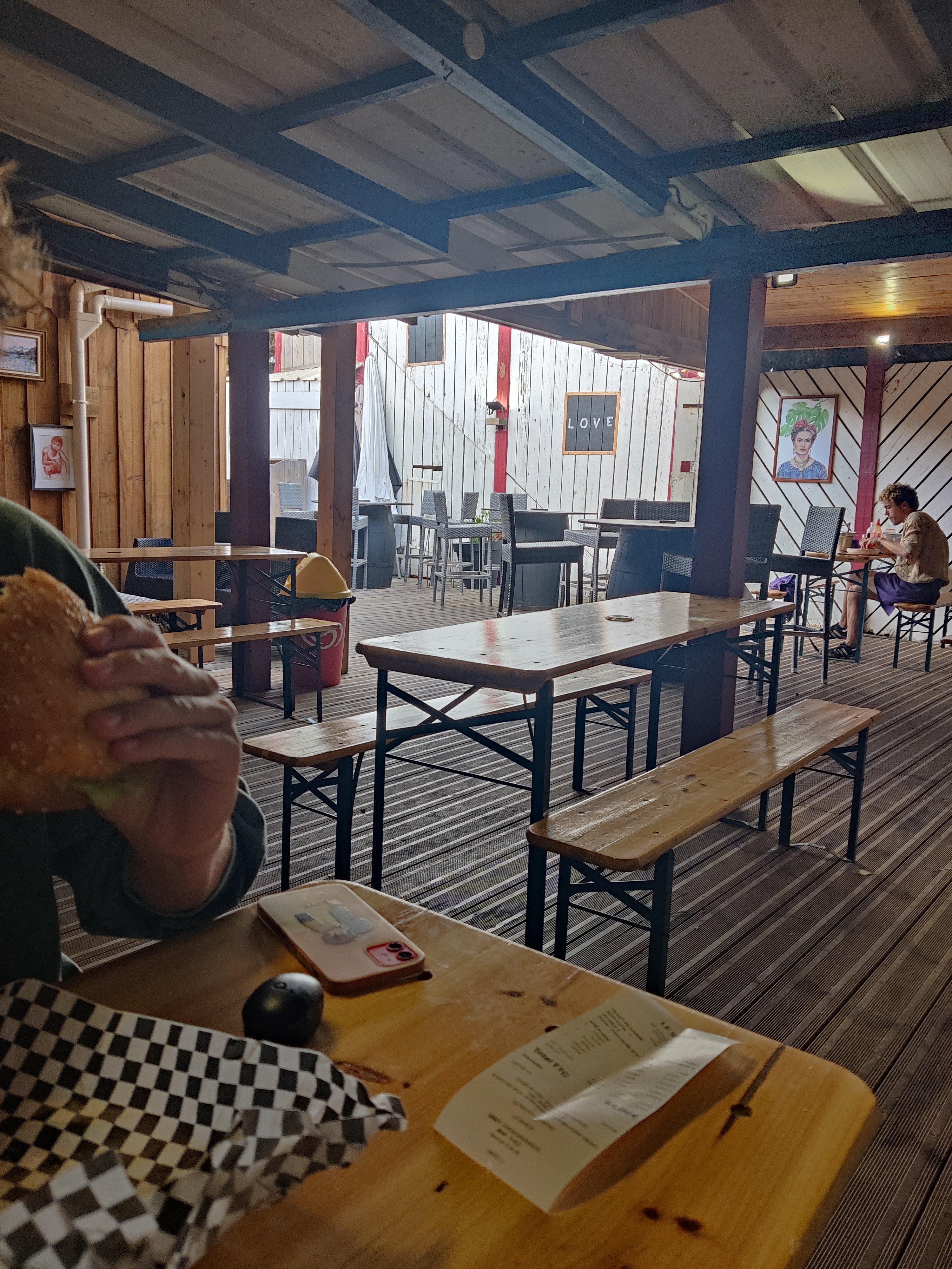La nourriture était vraiment bonne et le personnel était vraiment sympa. Ce n'est pas bon marché maintenant. J'ai payé 13 € pour un burger avec des frites et une boisson.