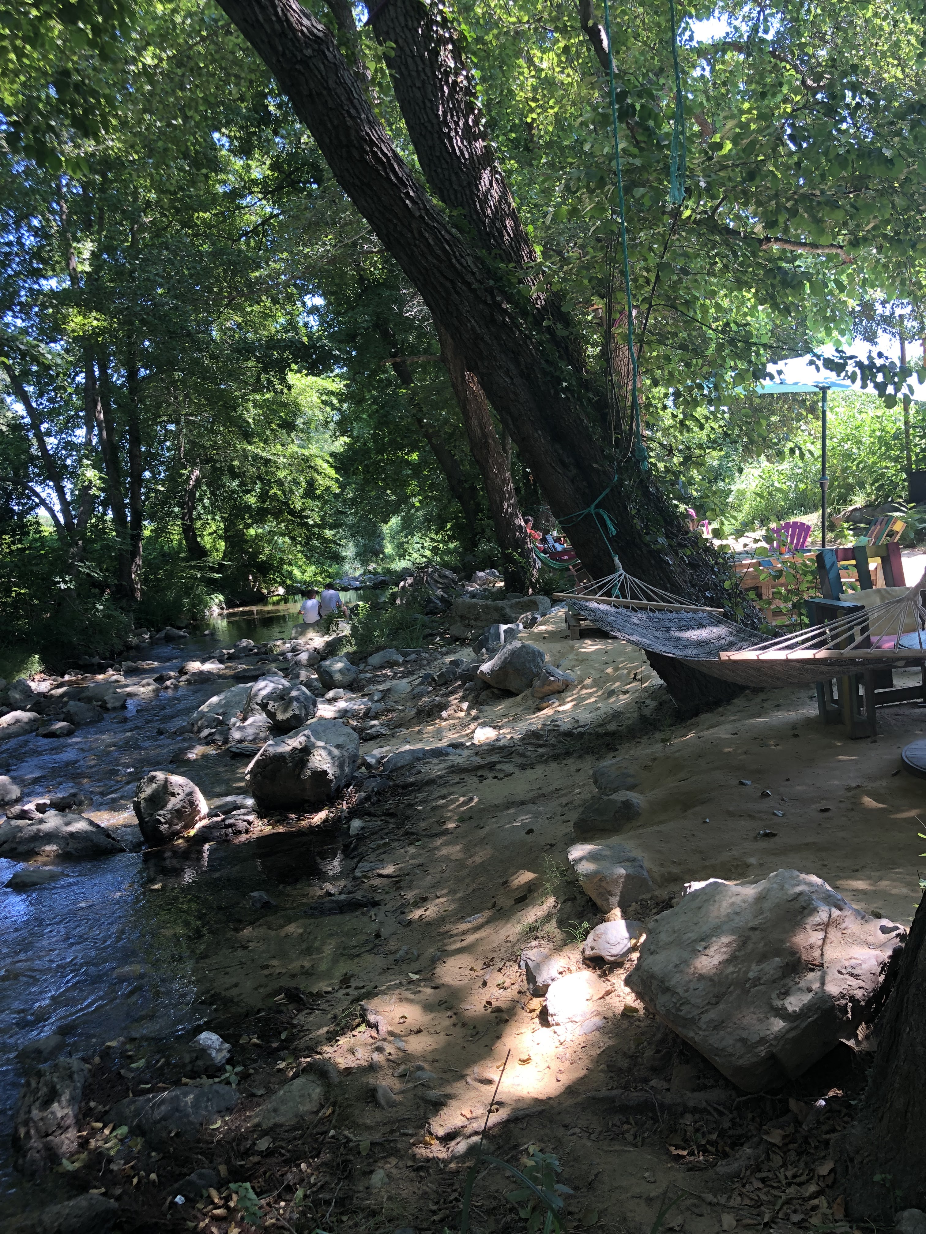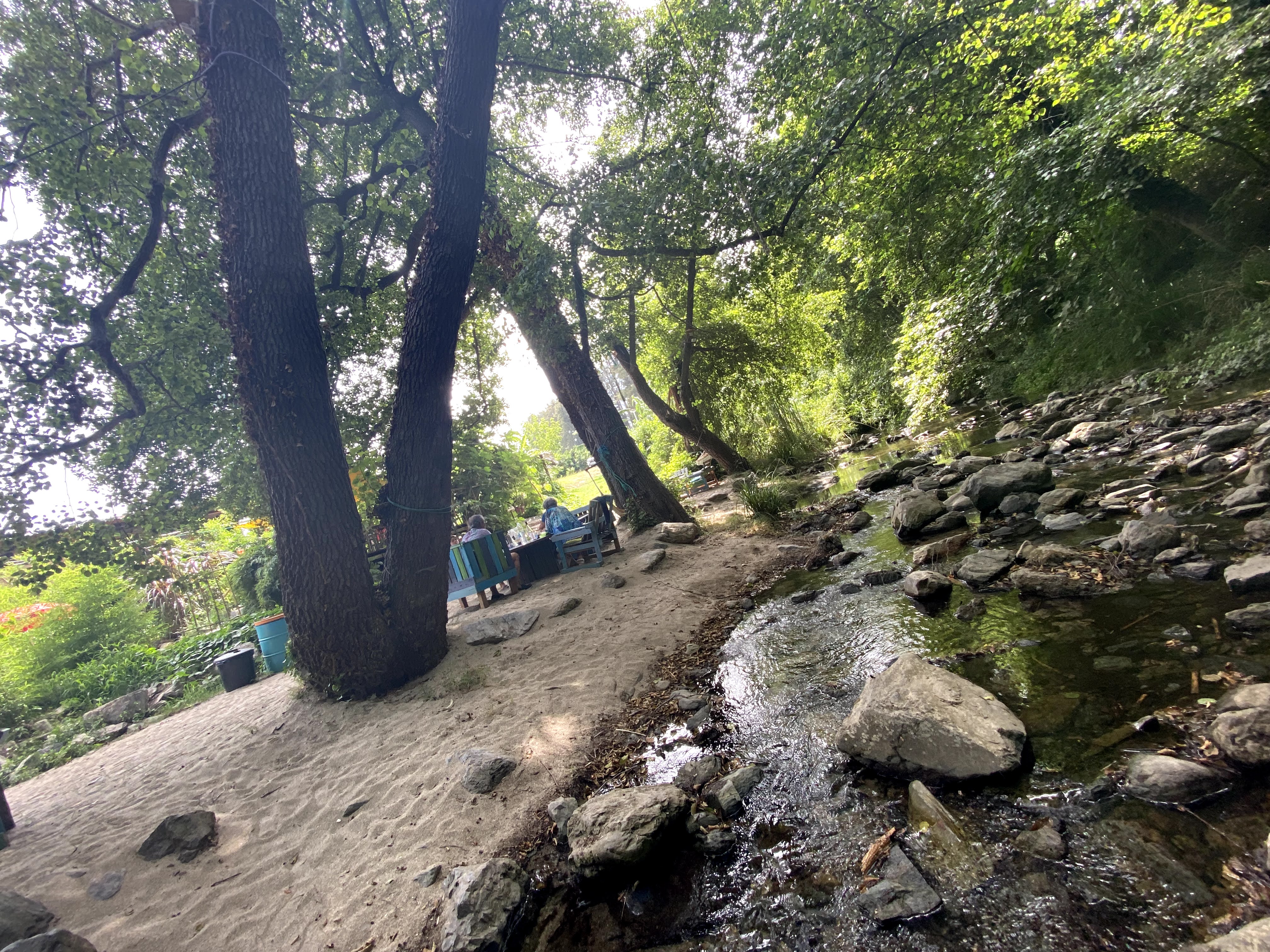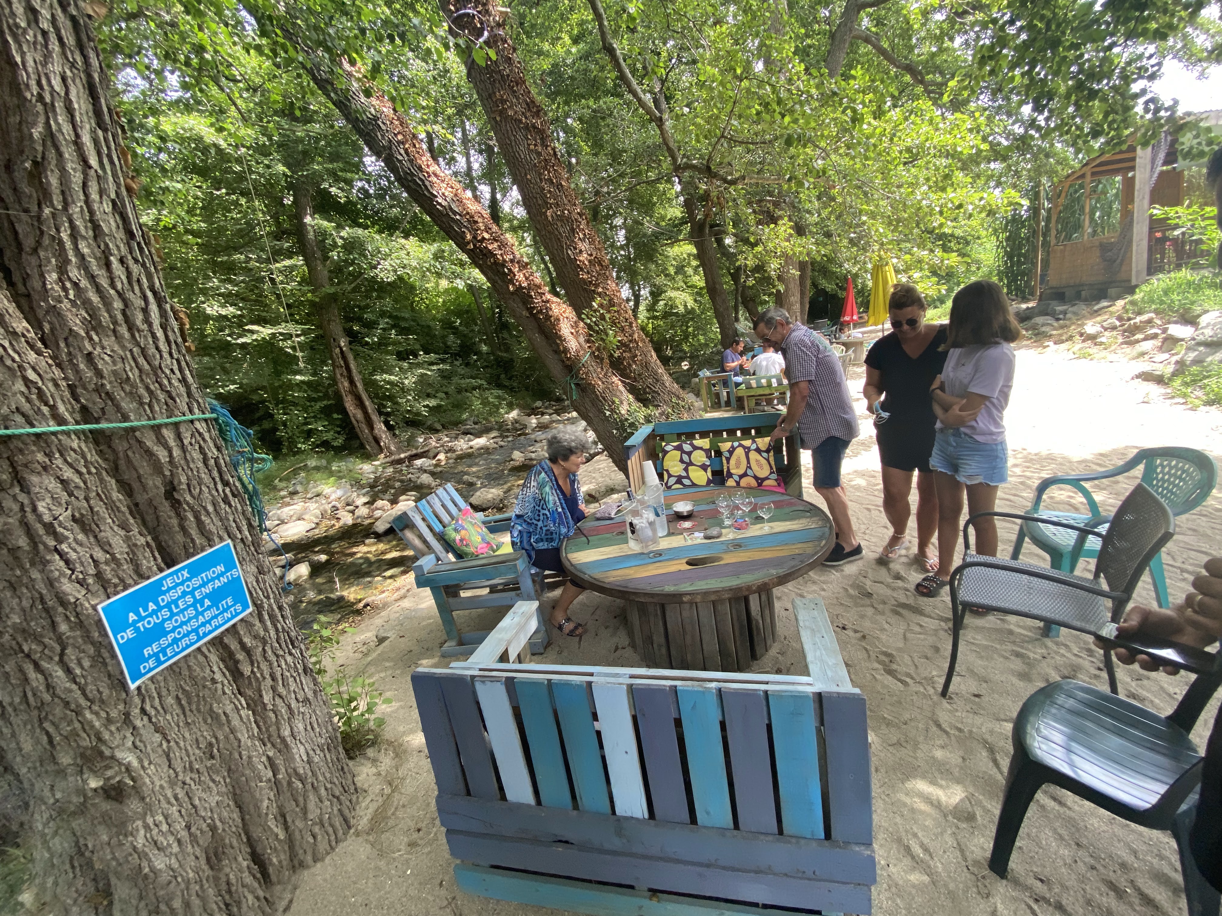 Les gens, la nourriture et l'ambiance sont incroyables ! De plus, une petite rivière coule à proximité des tables.