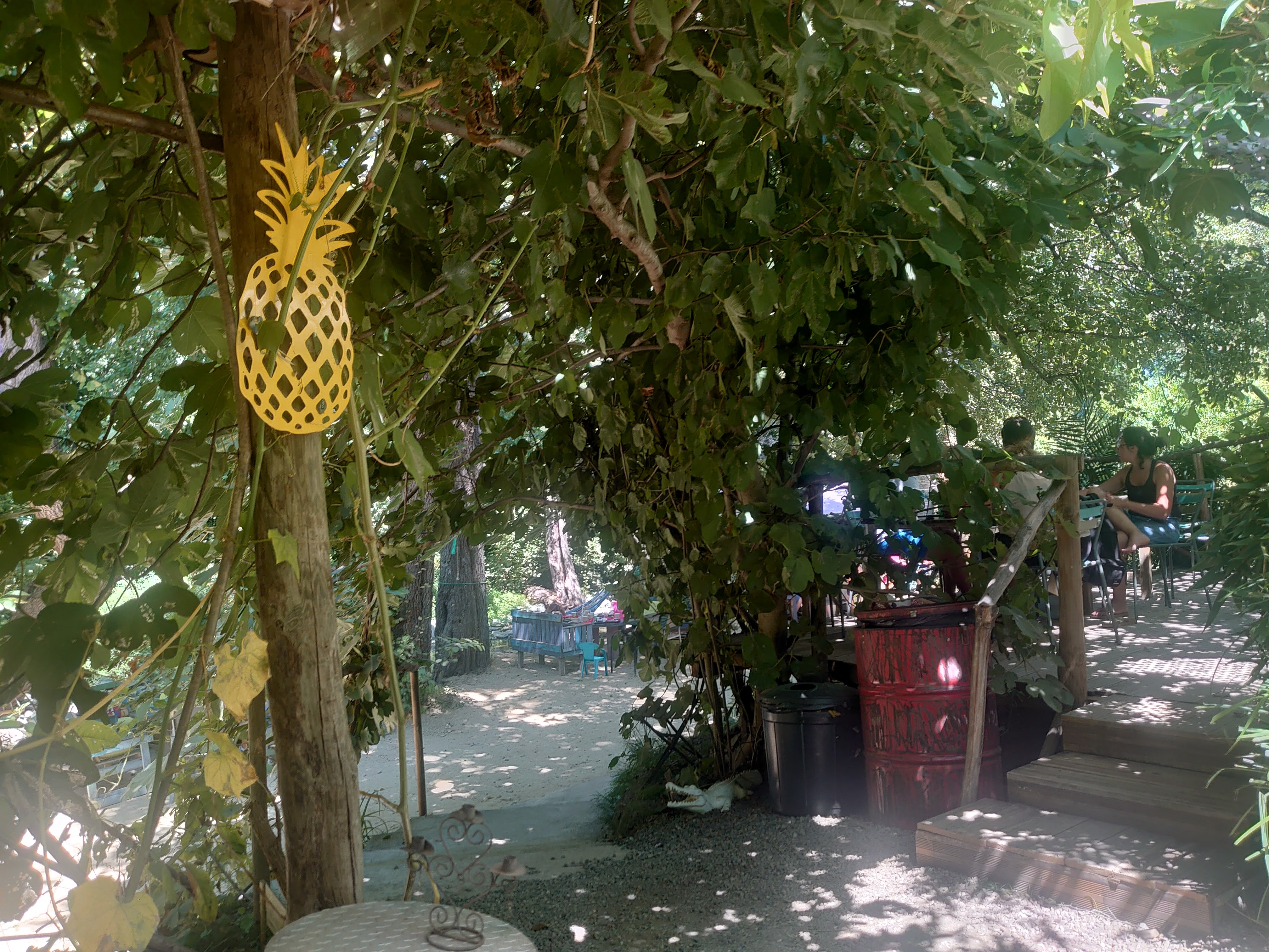 Un endroit merveilleux ressourçant près de la rivière il y a fait frais tout est en matériel de recup (palettes) les produits sont hyper frais bio. L’accueil y est excellent et la nourriture super bonne 😍 burger, salade de poulpe et le menu enfant avec de vrais morceaux de poulets panés ! Je recommande mille fois un petit arrêt rafraîchissant 😉