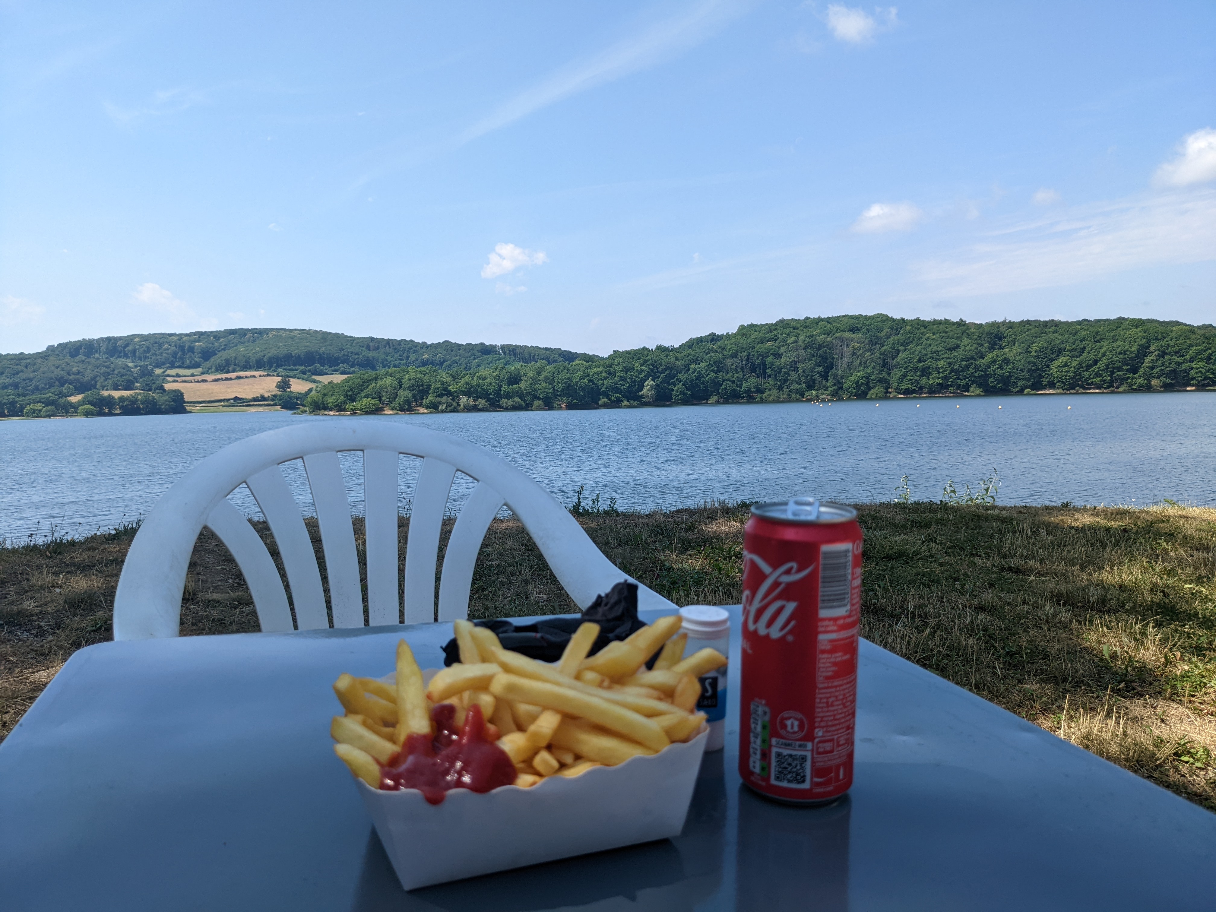 Les patrons sont très sympathique, la nourriture au top, une table juste à côté du lac très appréciable. Par contre mon mari a pris un hot-dog avec du pain ciabata pas adapté car le pain est trop dur, vu la largeur il est vide ,vaudrait mieux mettre 2 saucisses dedans . Les frites excellentes. Prix correct ! Super !