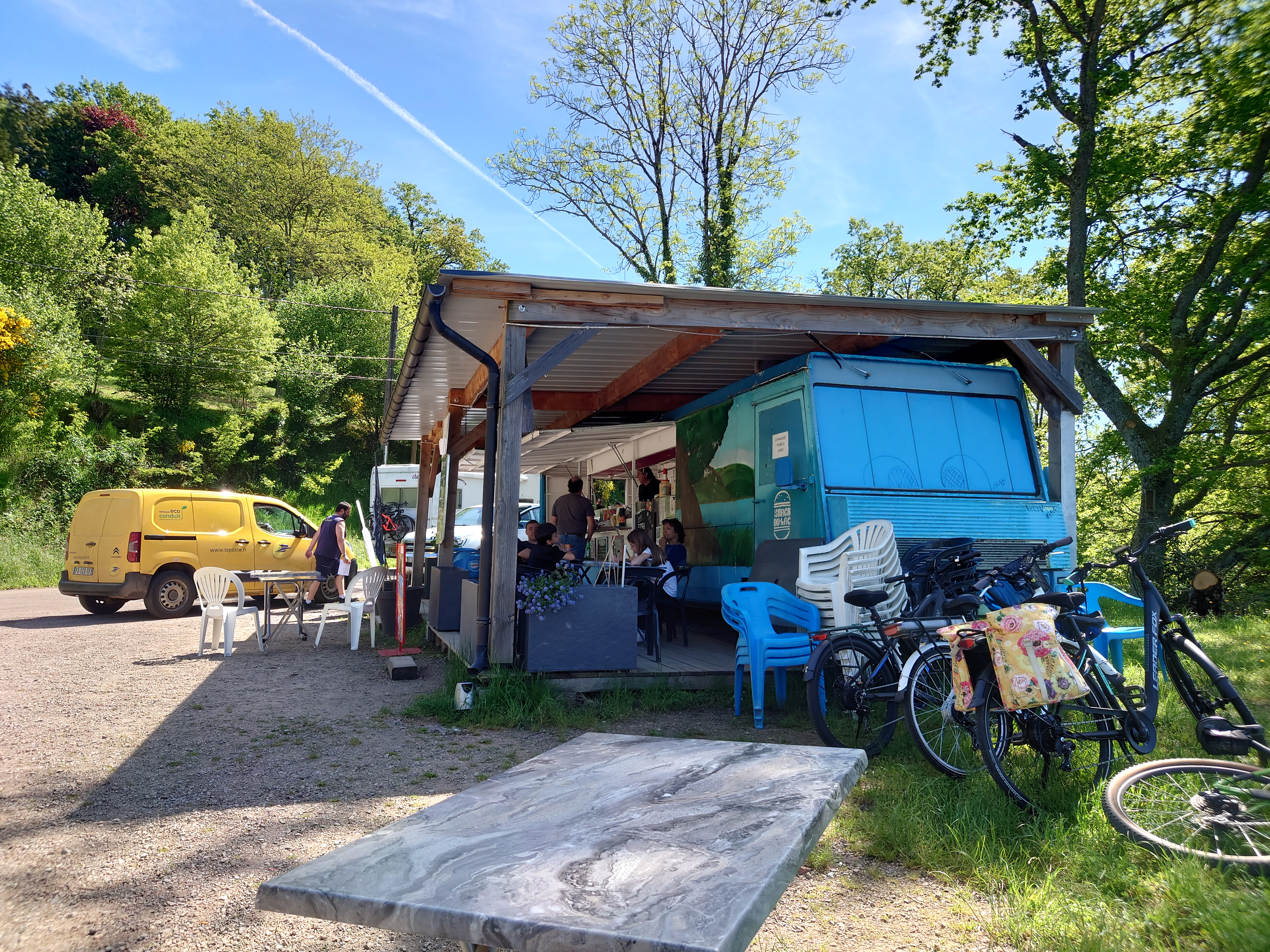 Il y a un très gros camion snack au bord du Lac de Pannecière. Délicieux pour les frites, la pizza, le café, les gaufres, les glaces, etc. Et cela en plein milieu de maintenant. Trop gentil! Et occupé pendant le déjeuner !! Super