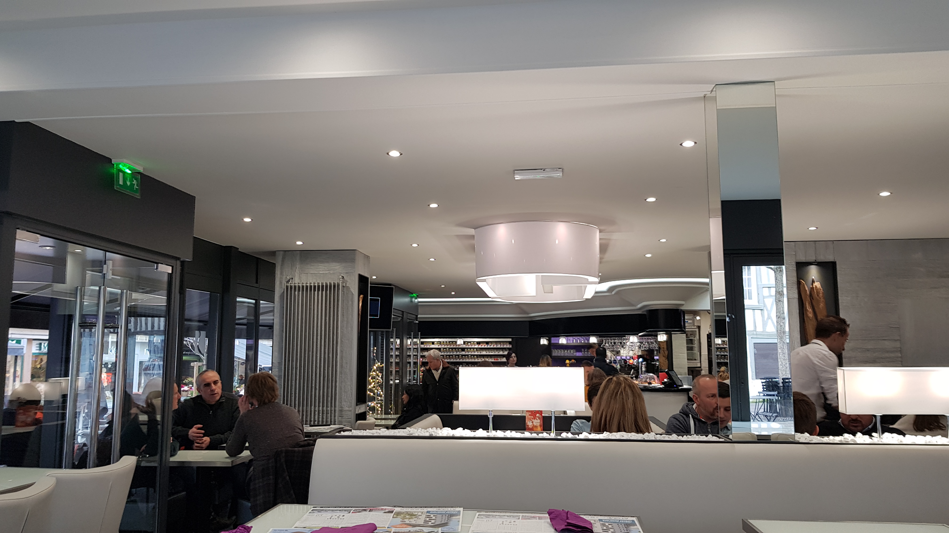 Décoration sobre et mobilier confortable (travaux effectués tout récemment). Nombreux espaces en salle, avec une belle luminosité . Brasserie très fréquentée de Rouen, avec une importante terrasse dans une rue semi piétonne. Un endroit parfaitement recommandable.