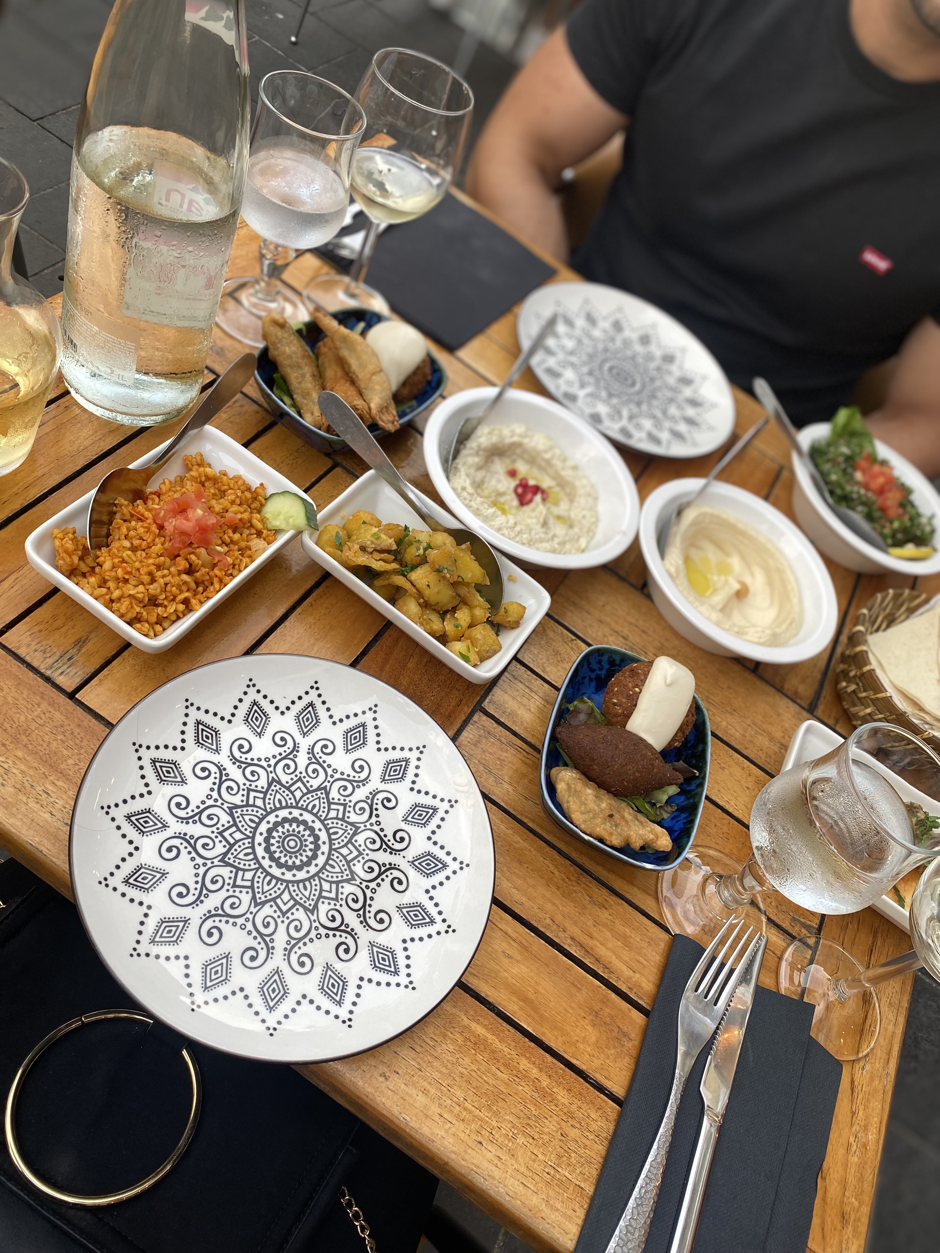 Obligation implicite de dépenser plus de 20€ par personne le week end étant donné que les assiettes ne sont disponibles qu’en semaine et qu’il faut prendre minimum 2 mezze (10€ en moyenne l’un) ou un plat (20€ en moyenne) par personne. Nous sommes donc partis et l’un des serveurs n’était pas content et s’est montré impoli car nous n’avons pas souhaité dépenser la somme escomptée. Mauvaise expérience donc.