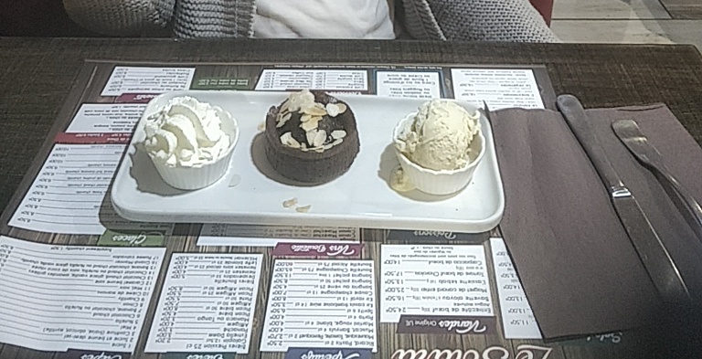 Déçu de l'accueil, on a plus eu l'impression de déranger, j'ai donc pas pris de dessert j'irai le prendre ailleurs. Néanmoins l'hamburger était bon