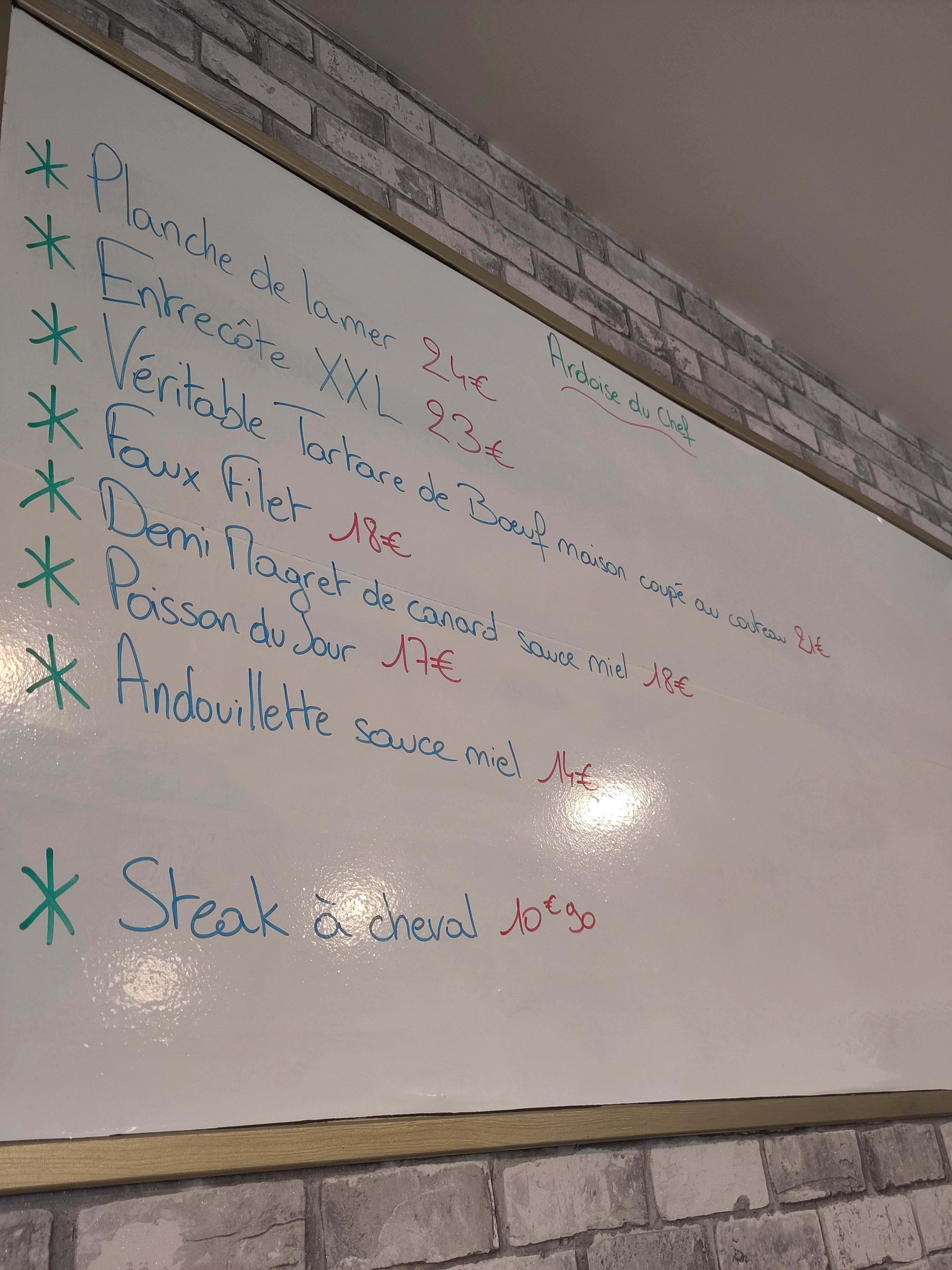 Excellent accueil et rarement mangé une viande aussi tendre,frites maison ,des assiettes très copieuses ,un choix de plats qui contente tous le monde, adresse a partager