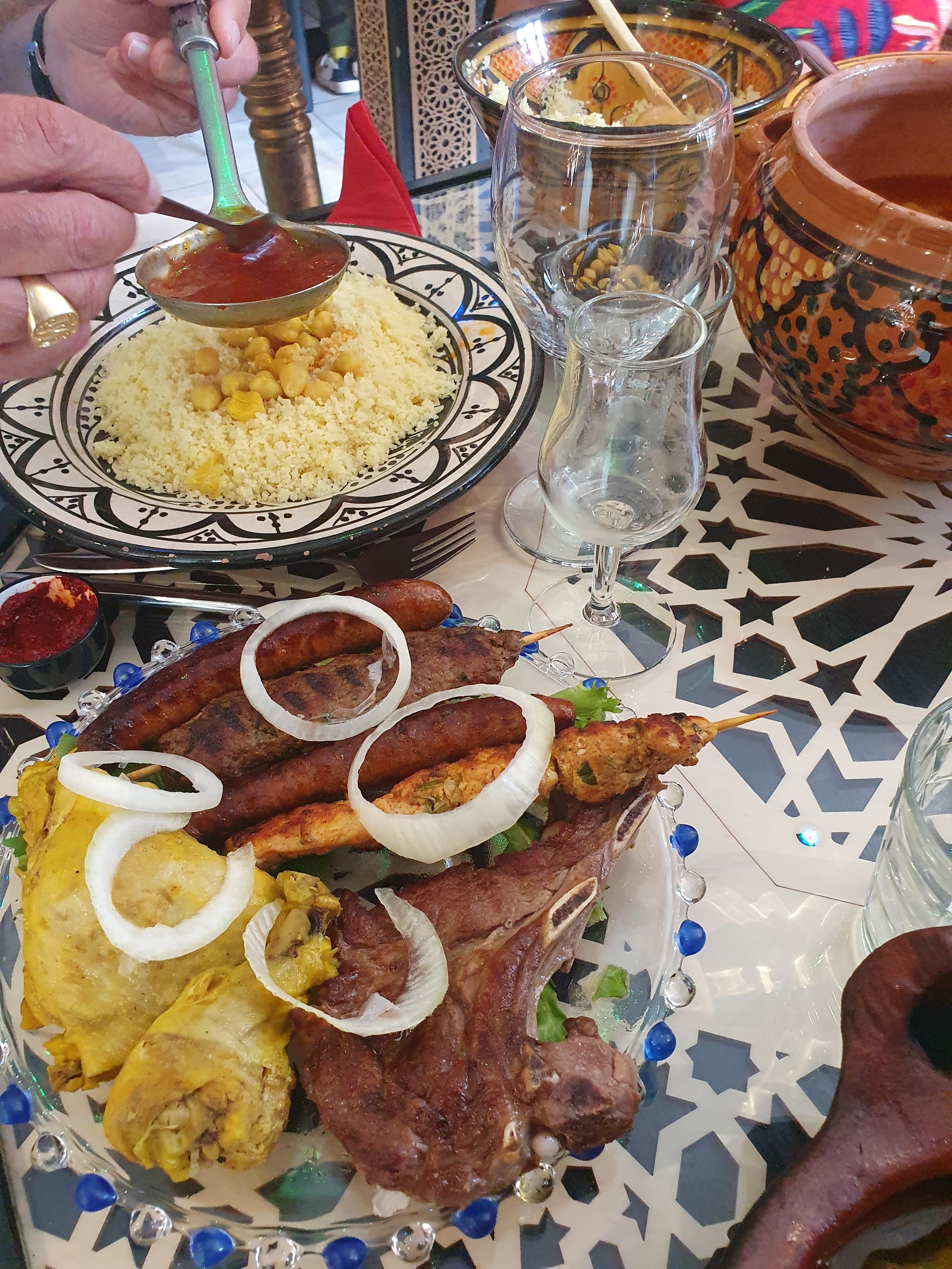 Un peu déçu de nos plats..(mais tout de même très bons ) car j'avais une grand mère Oranaise et une mère Marocaine..les gâteaux à base de cacahuètes..dommage... le restaurant...était malgré tout une belle découverte