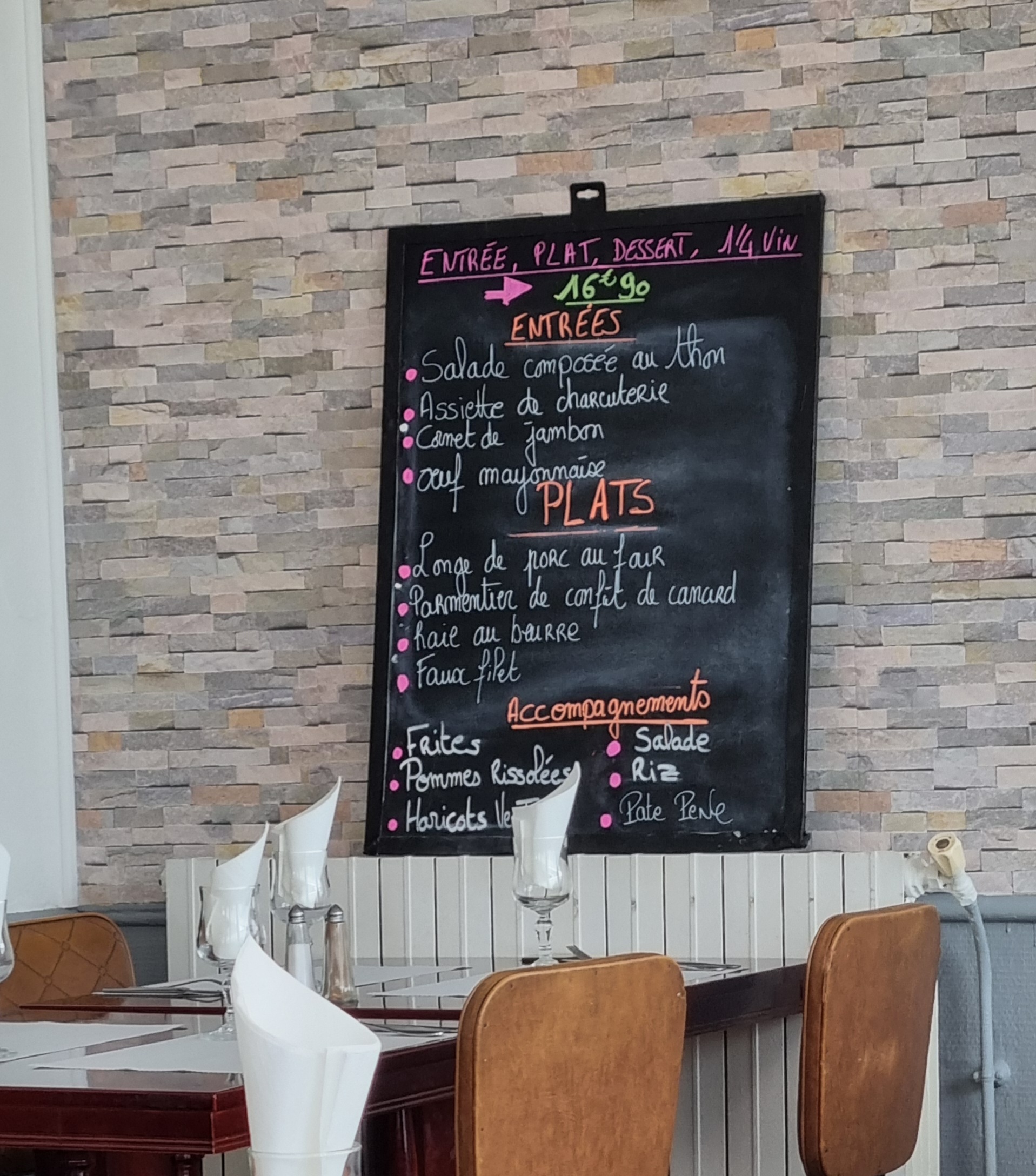 On y mange bien. Cuisine familiale et divers. Nouveau menu toutes les semaines pour petits et moyens budgets. Accueil chaleureux.
