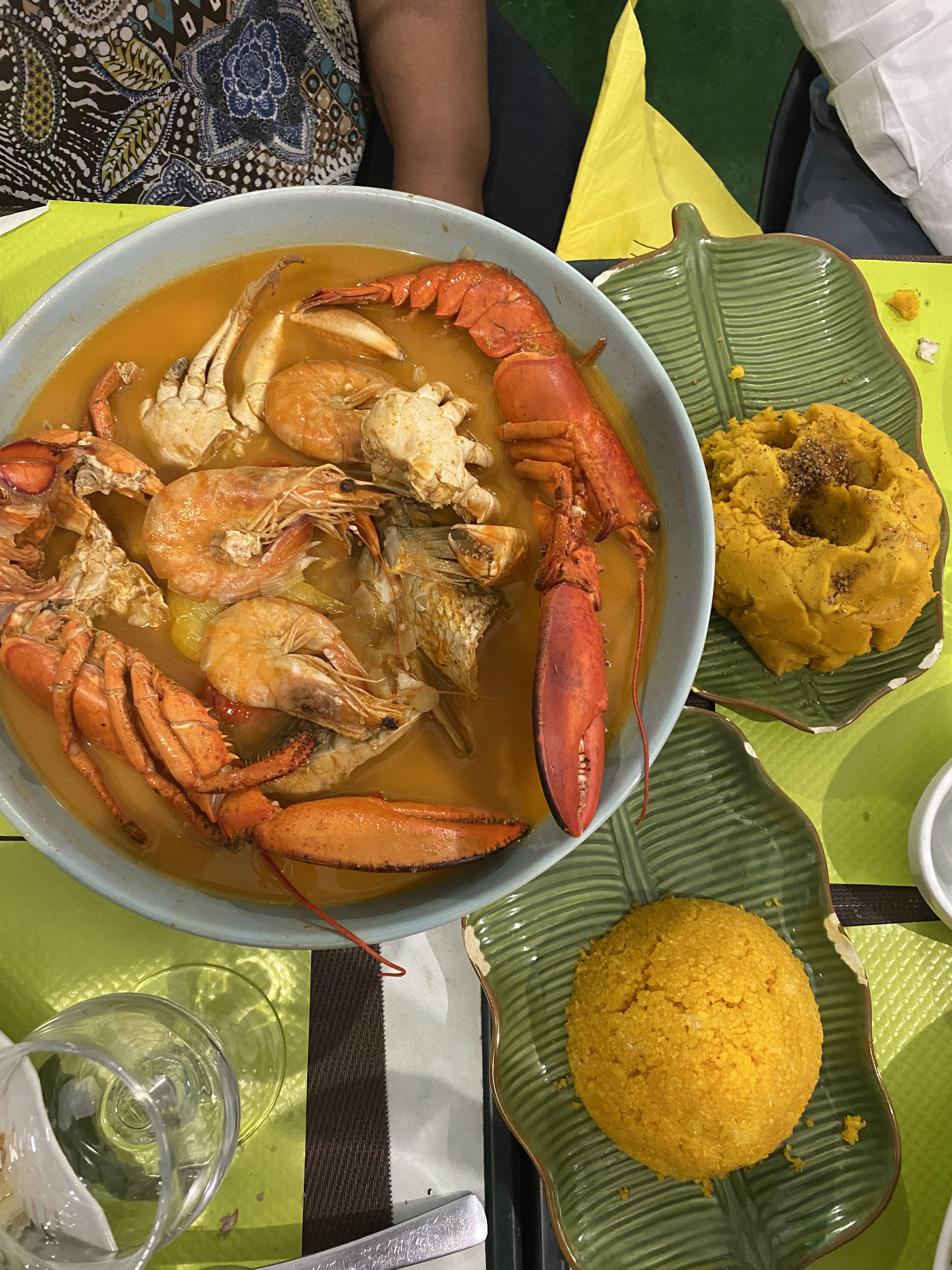 Les accras et pastels sont succulents. Menu varié avec du poissons, des crustacés, de la viande. Le plats était bon et copieux. Certains plats sont préparés à la commande donc il faudra s'armer de patience (environ 45 min) . Pour moi, ça valait le coup. Si voulez être servi plus vite demander au serveur quel plat est déjà prêt ou rapide. Serveur aimable. Un point en moins pour le manque d'amabilité et de sourire de la gérante.