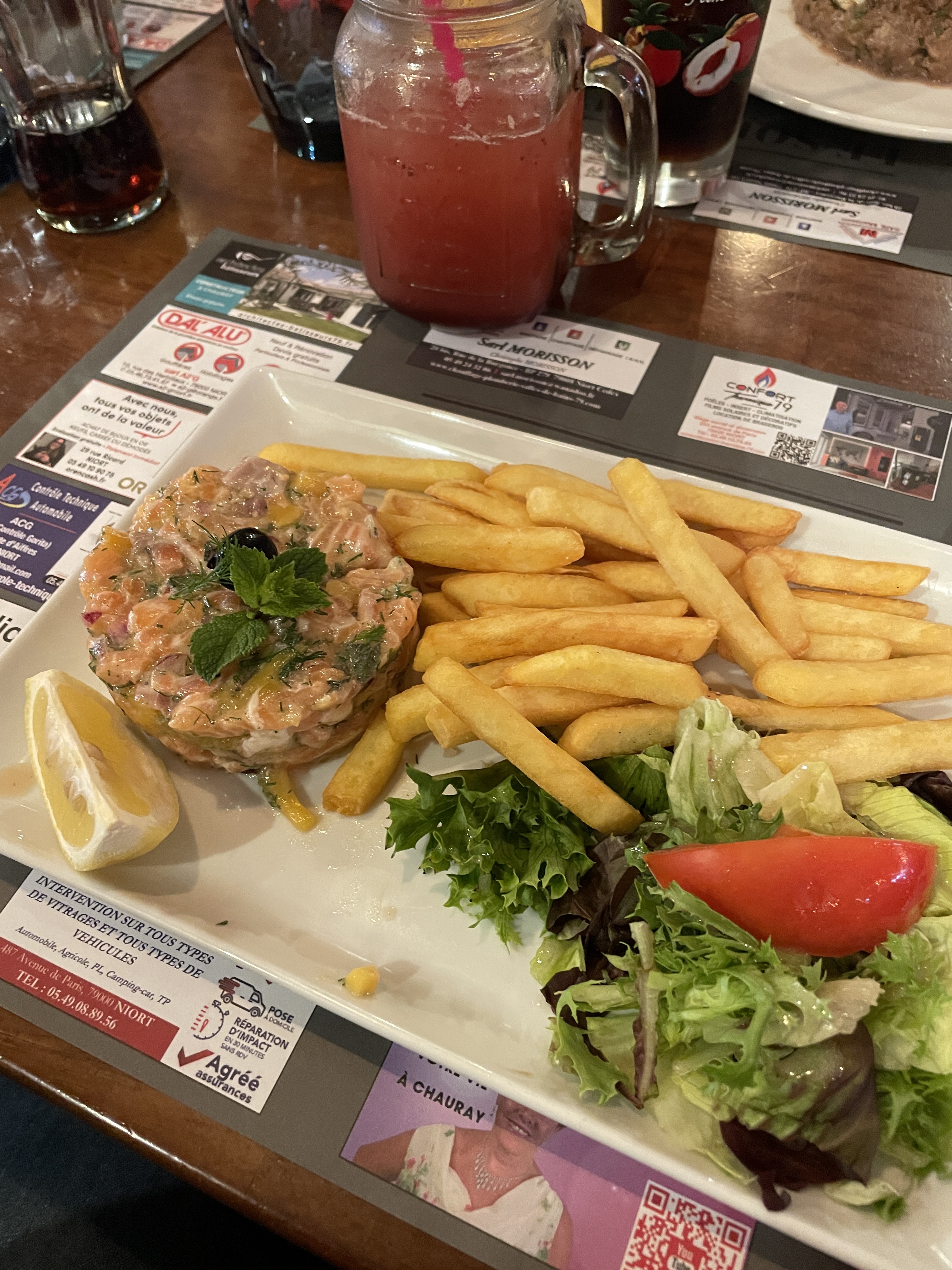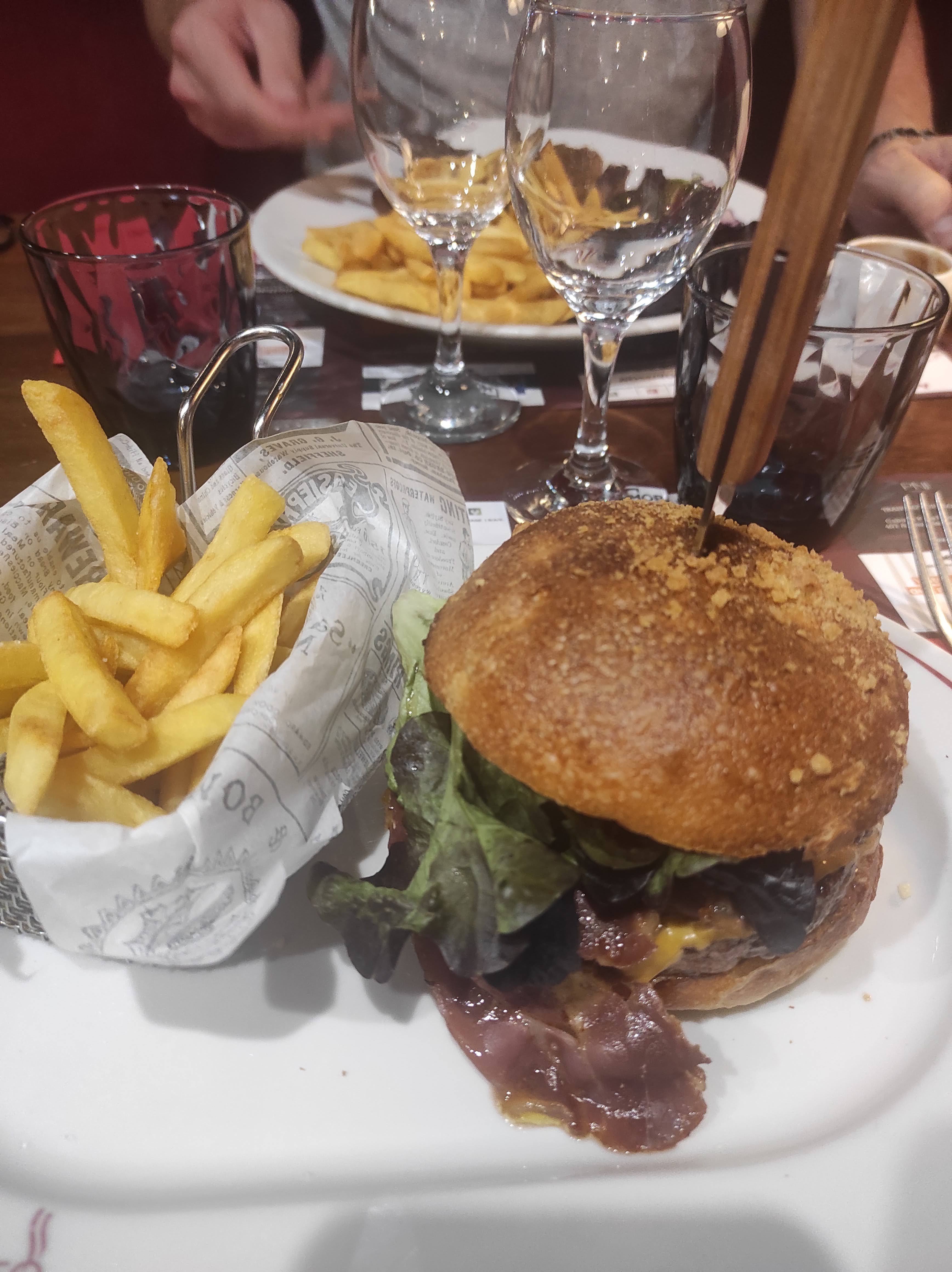 Notre apéritif était bien, nos plats (Burger et tartare gratinée) étaient super bons, d'ailleurs la carte est très complète et la majorité est fait maison. On a fini sur des profiteroles qui étaient délicieuses également. Les serveurs au top et élégants. Bon rapport qualité prix. Et pour finir on était en terrasse c'était agréable. Seul point négatif les kékés en motos qui faisaient du bruit et nous polluaient l'air, bien évidemment pas la faute de l'établissement. J'y retournerai sans problème