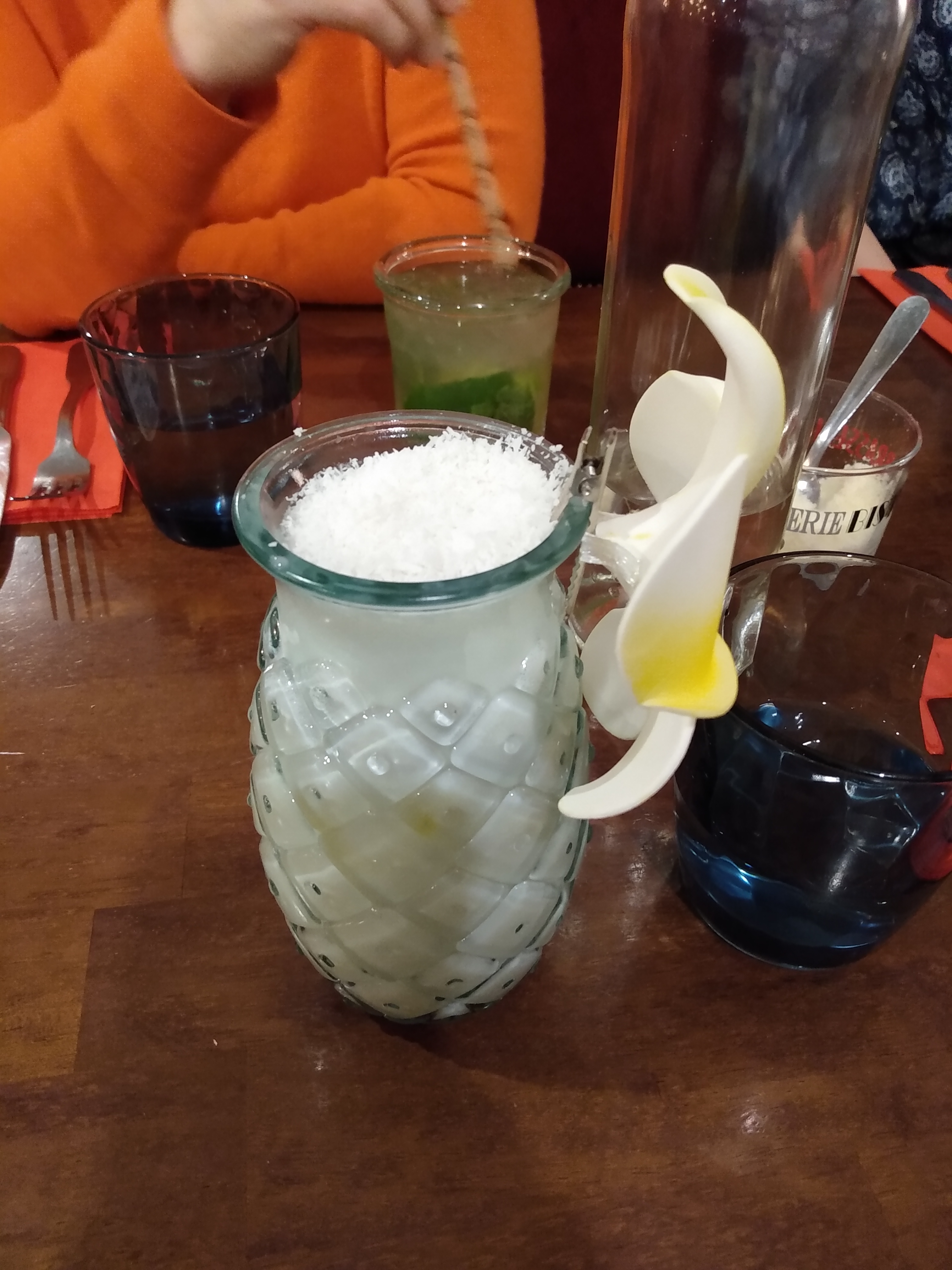 Les 2 serveurs sont au top du top, et nous ont réservés un accueil très chaleureux! Nous avons très bien manger ( la sauce de la purée était excellente) et les cocktails étaient super ! (mojito et Piña colada)! Nous avons passer une très belle soirée d’anniversaire dans ce restaurant, merci! Très bon rapport qualité/prix et service rapide! 👍🏼