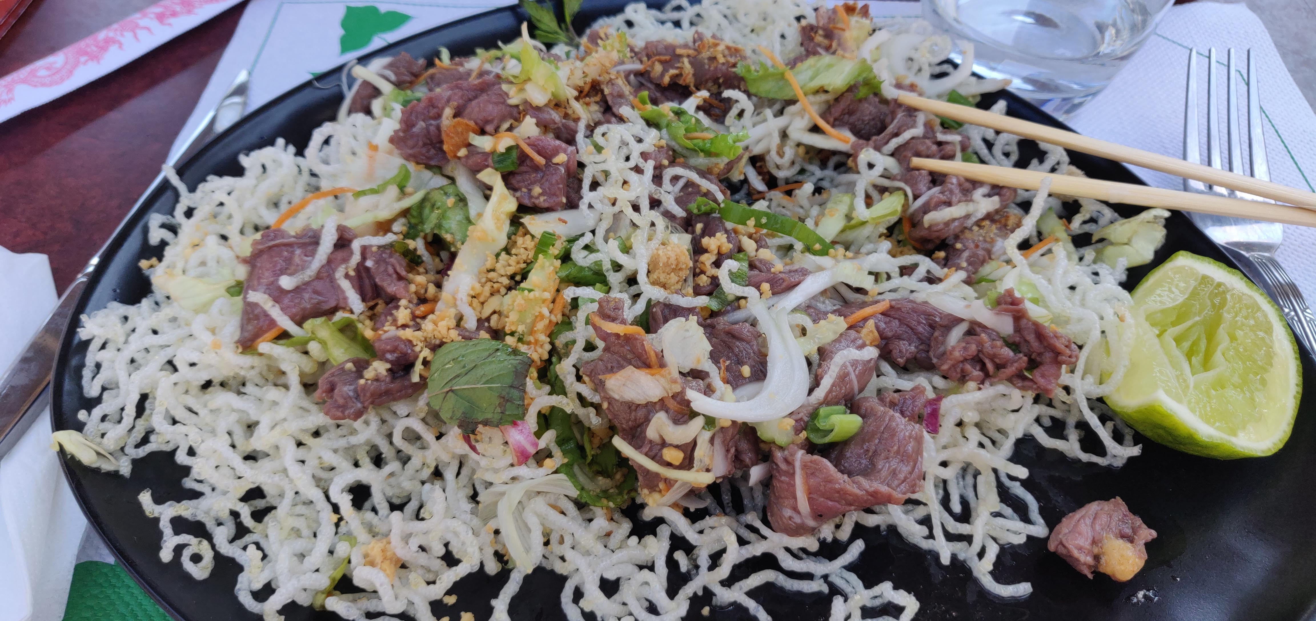 Super repas, personnel agréable nous avons commander plusieurs plats et tout étais excellent ça fais plaisir de voir un restaurant spécialisé plutôt qu'un traditionnel chinois qui ne sert pas de nourriture chinoise. Ici on as un cambodgien excellent. Toute la carte n'est pas disponible mais il y as un turn-over. Nous avons vraiment passer un bon moment et la nourriture étais excellente. Pour les fans de piquant demander au staff ils ont ce qu'il faut. Je recommande fortement (++).