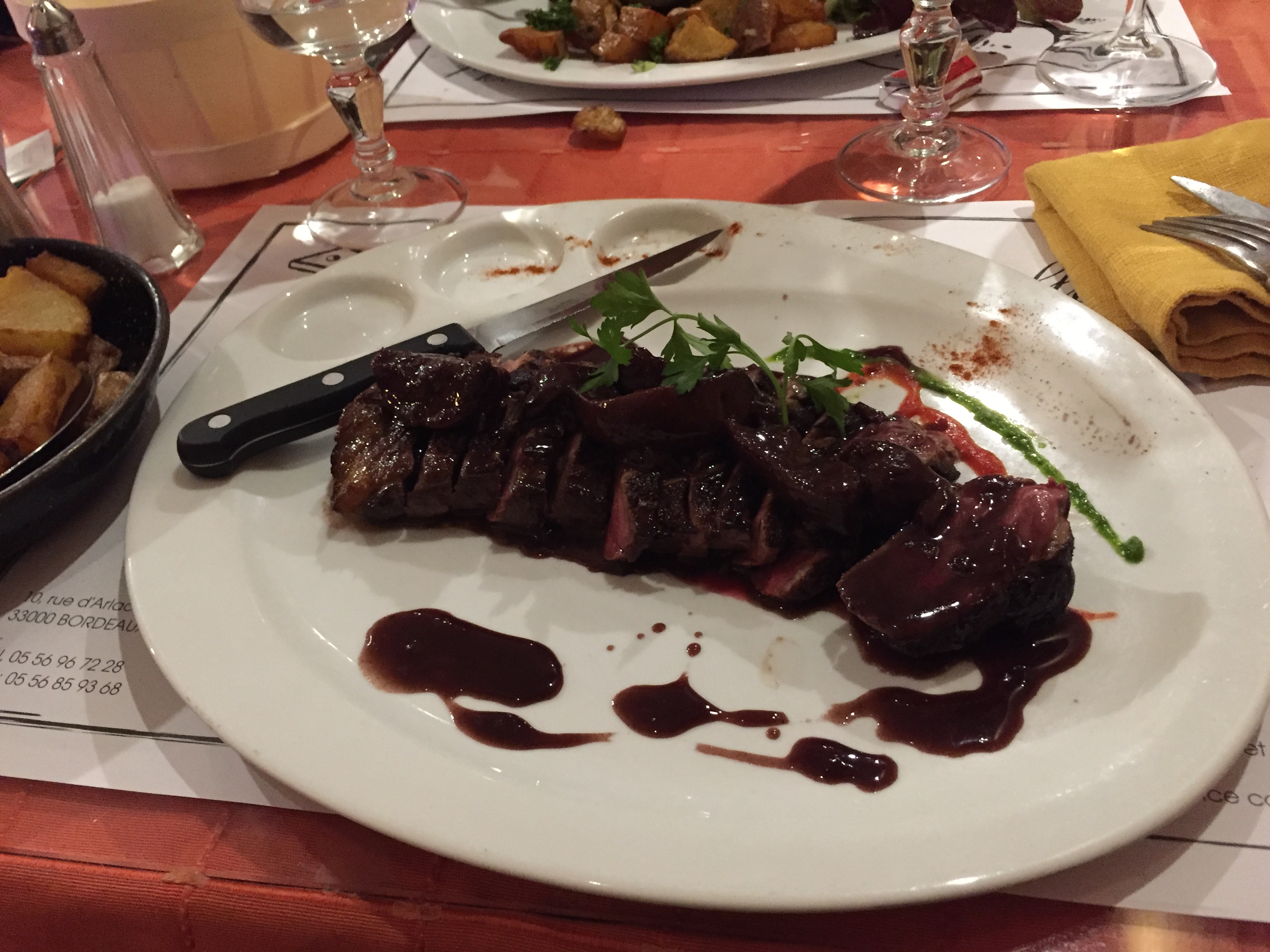 Retour à Bordeaux ans après. ..toyjiyrs le meme accueil chaleyreuw et la même qualité. Nous y avons dégusté deux spécialités: une côte de boeuf et un baba au rhum.