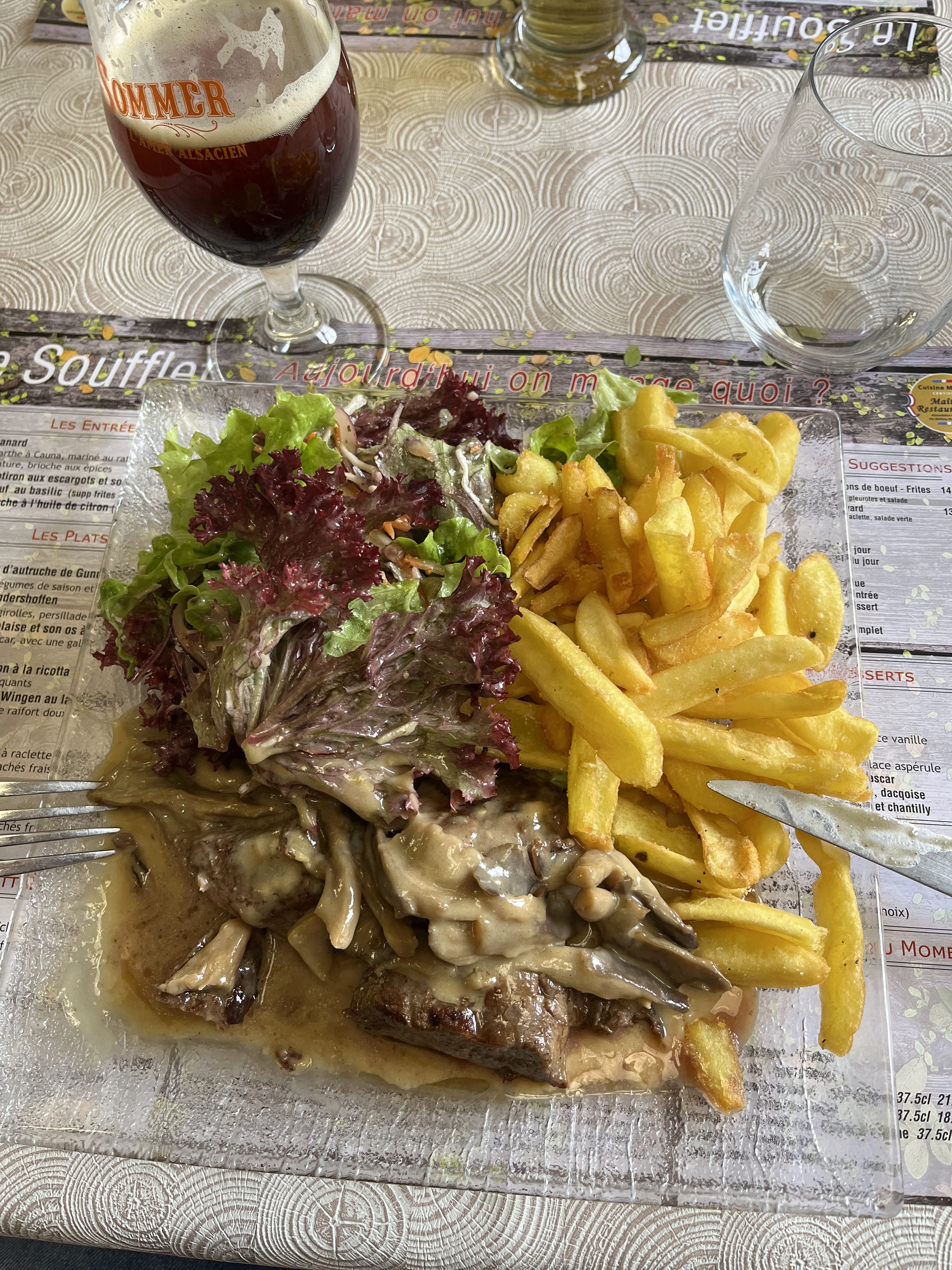 etant de pasage en alsace pour des vacances en couple nous avons chercher un restaurant dans le coin et sommes tomber au soufflet par hazard le cadre est vraiment sympa, prix élevé surement du au taxes élevé dans la region l'absence de carte à boisson est dommage car pas d'affichage des boisson consommable dans letablissement et en plus nous consommons des boisson sans en savoir le prix en ce qui concerne les plat 1 sur 2 de correct café bon mais mignardise surgelé dommage. 1 de nos plat est repartit plein la serveuse Fausse à demander à tout les clients si tout ces bien passé soit 3 tables sauf NOUS est ce parce qu'elle n'a pas oser du à l'assiette retourner pleine??? je ne sait pas mais le contrôle satisfaction aurait pu être fait dommage mais dans tout les cas nous ne referons pas 600km pour manger la .