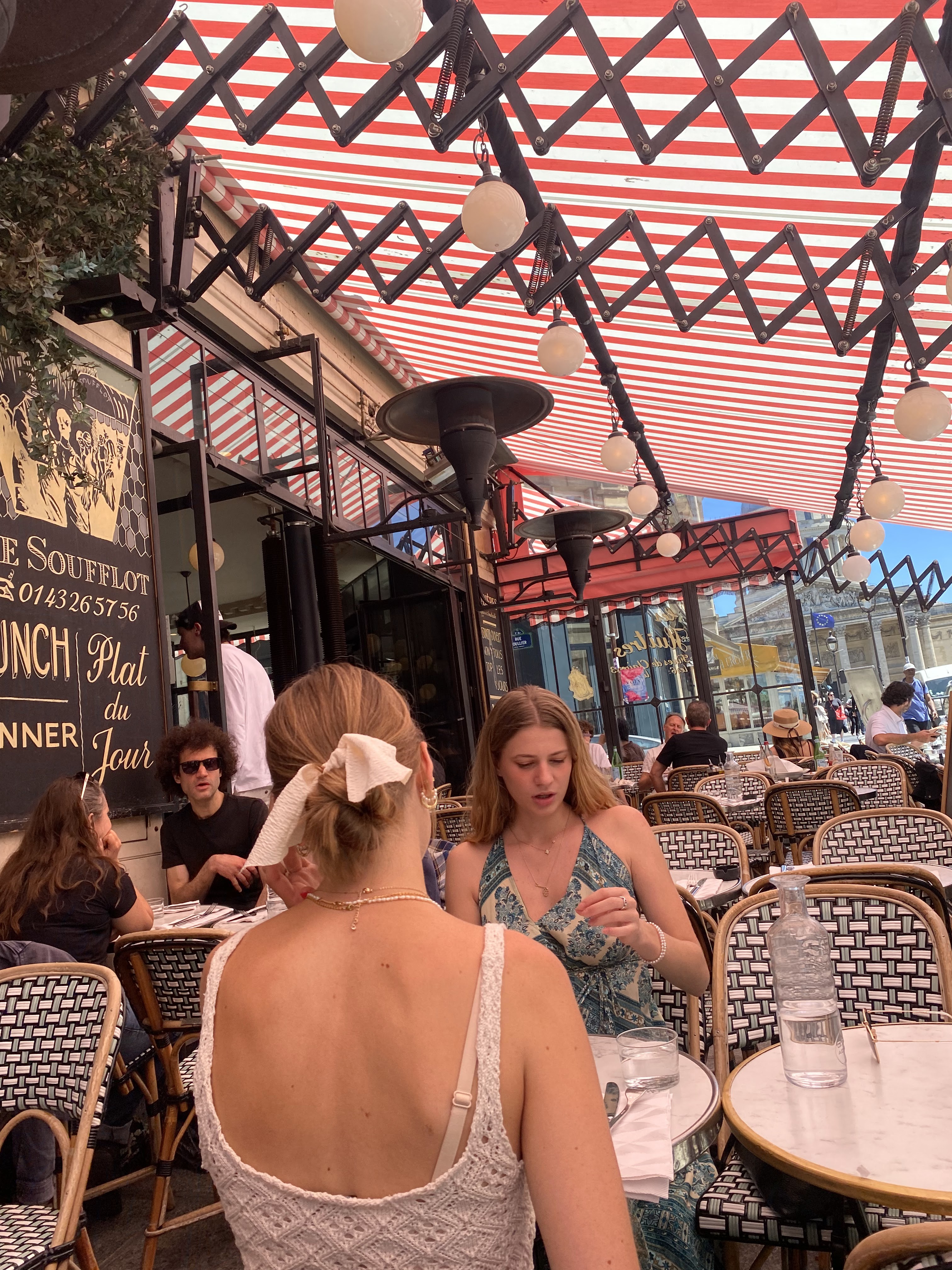 Bonne expérience ! Bien situé, ce restaurant donne une vue directement sur le Panthéon, les serveurs sont très sympathiques, les plats sont très bon et pour un prix correct et donnent fortement envie. Pour la note negative, je ne trouve pas qu'ils soient très généreux notamment le Burger Soufflot dont les frites servies en accompagnement semblent avoir été servies tièdes.