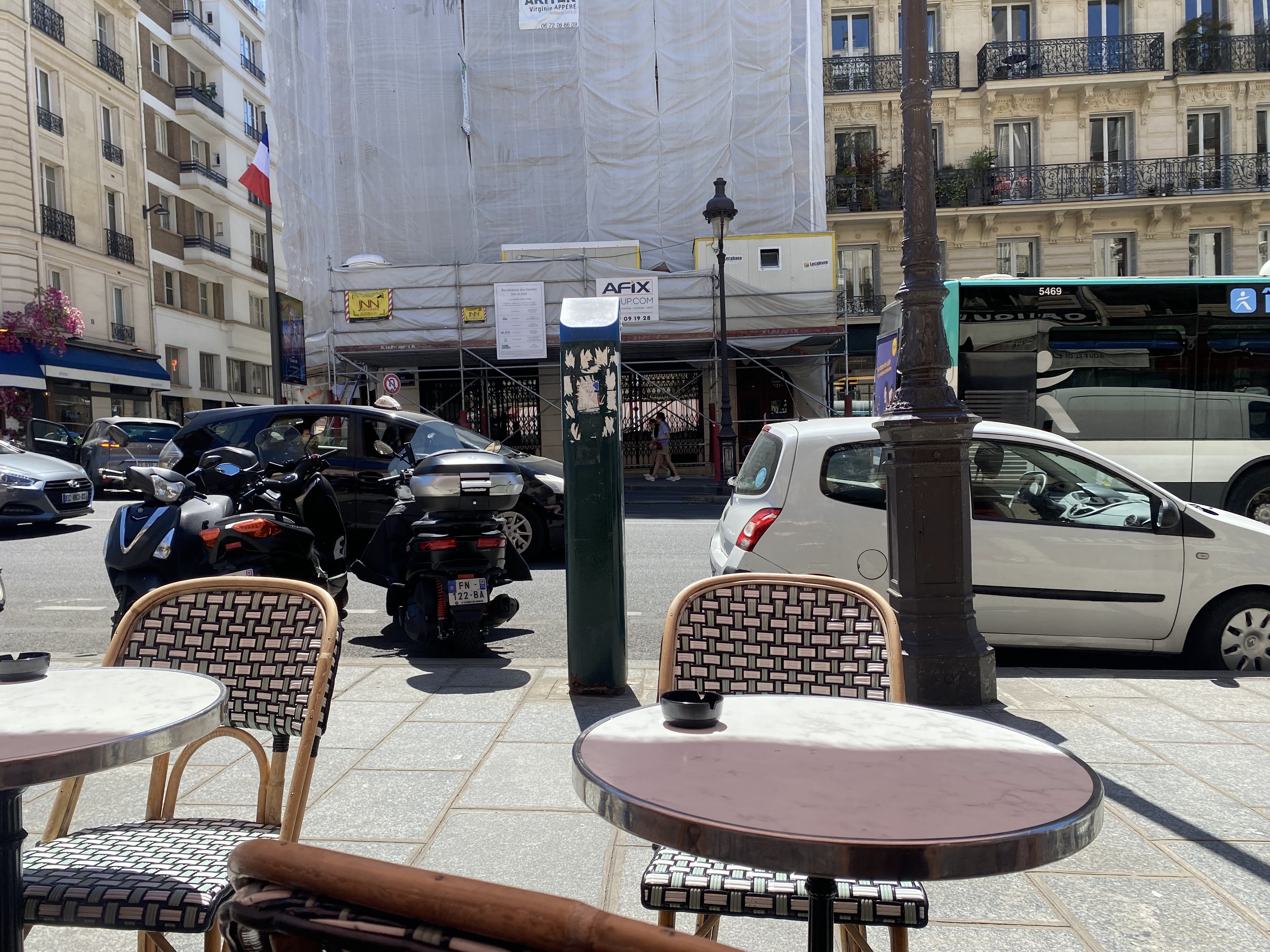 Très bien placé avec une terrasse fermée avec chauffage. Bons petits déjeuners avec 3 formules entre 3,50 et 9 euros, ce qui reste plutôt raisonnable dans ce quartier.