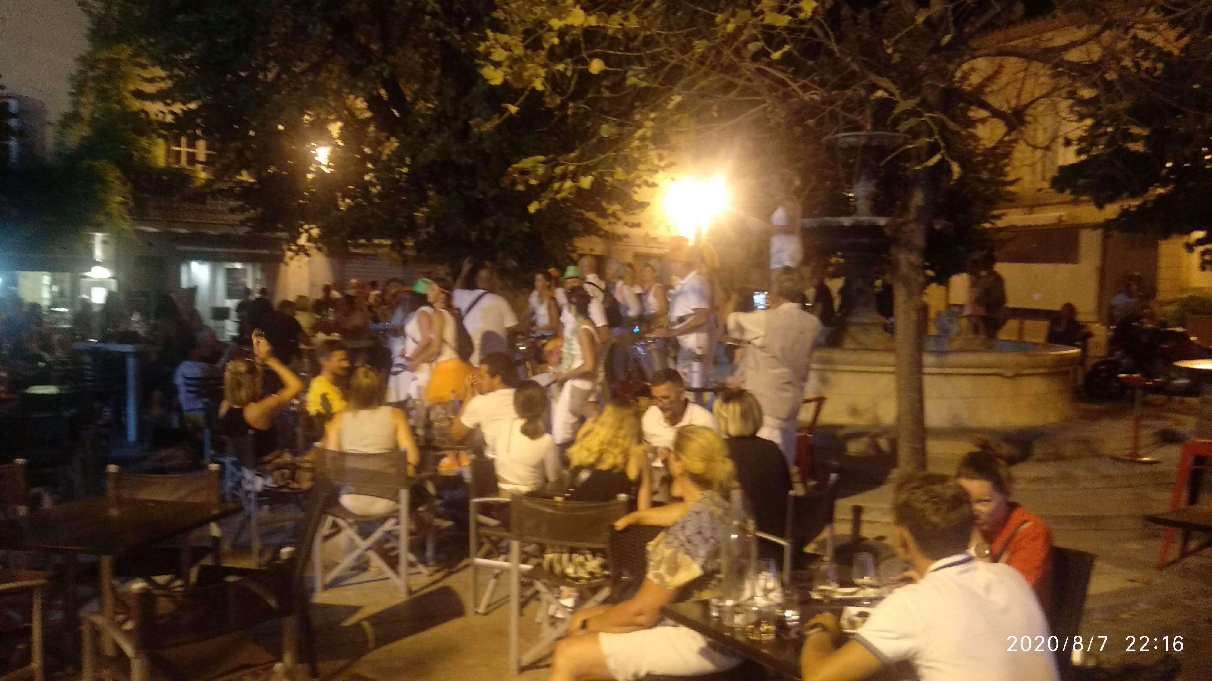 Pour ce jeudi soir où un orchestre se produit, nous avions réservé une table. Indispensable ! Arrivés pas trop tard, nous avons pu choisir notre table. Et hop, la carafe d'eau d'accueil arrive. Ce soir, comme tous les jeudi soir, menu imposé : tapas. Il faut savoir que selon l'effectif à votre table, le nombre de plats servis varie. Question de portions. Mais vous sortirez de table rassasiés. Pour deux, s'enchaînent : Tartinade de chorizo Frites Salade burrata tomate Encornets au citron Ravioles de Romans gratinées Bavette à l'ail Samoussa au fromage Il vous sera ensuite proposé de choisir un dessert à la carte.