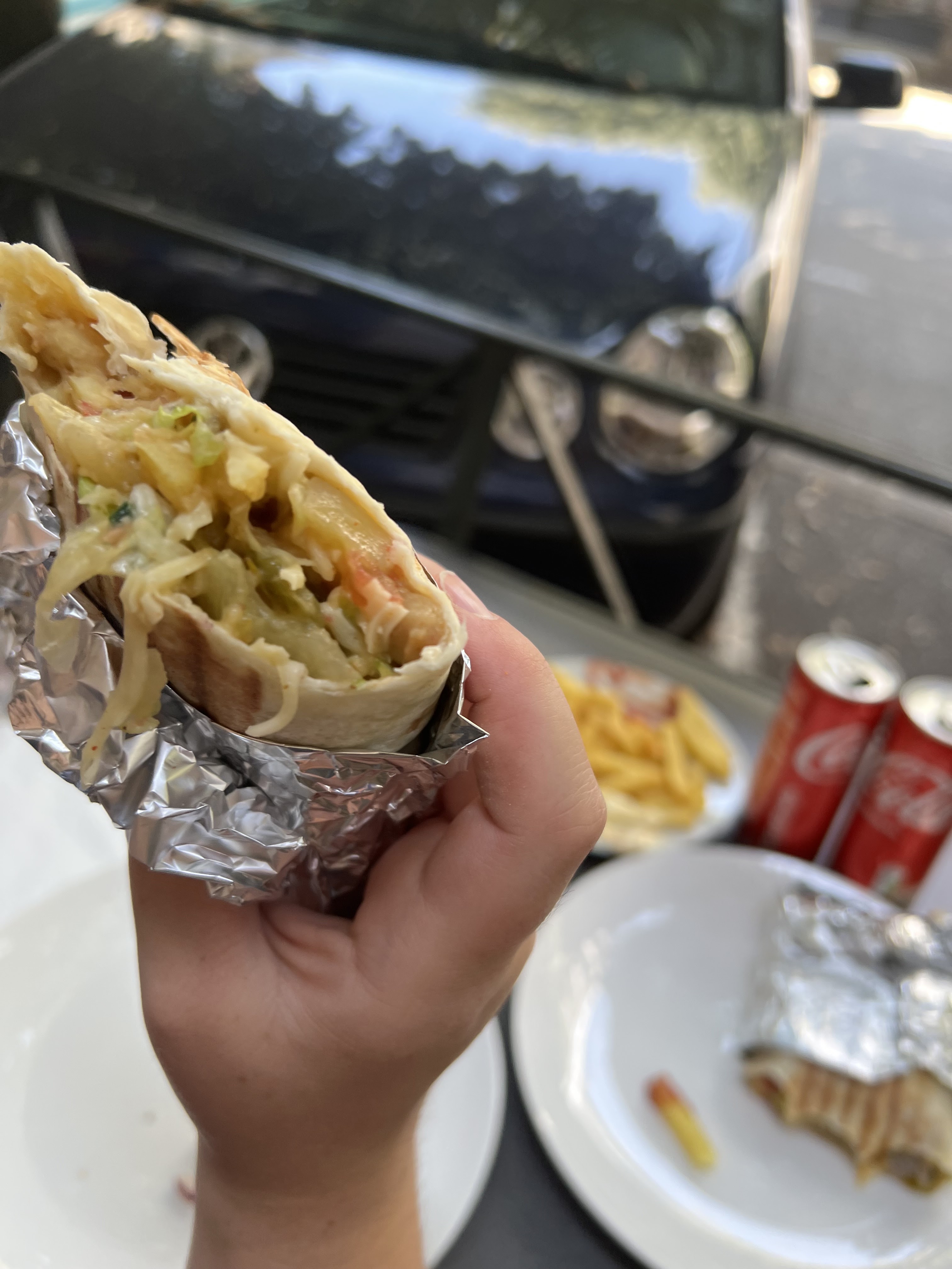 La nourriture est tellement bonne, les burritos regorgent de jus et de saveurs, de pois chiches et de fromage, de poivrons et de tomates, je le recommande vivement !!!