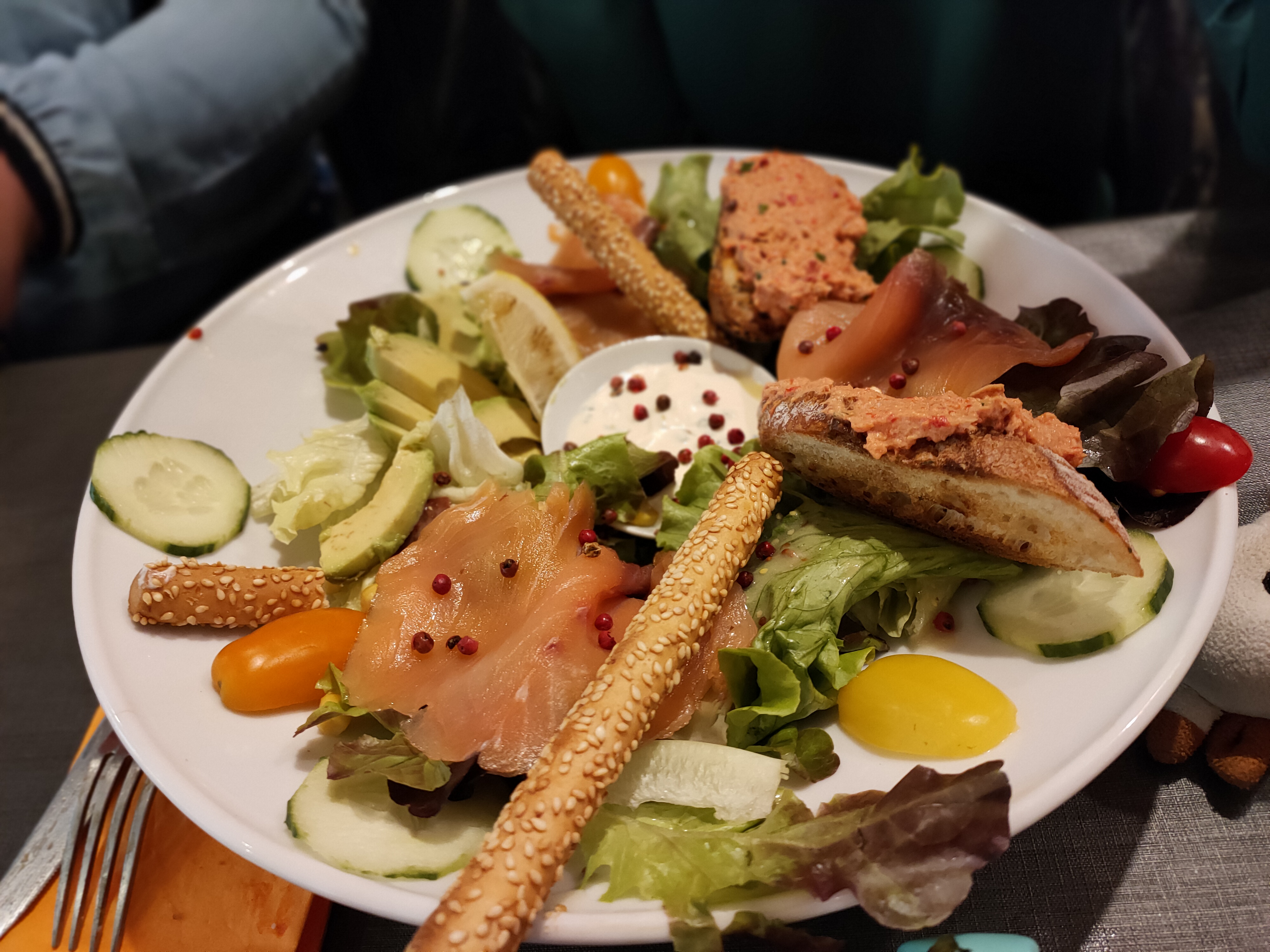 Des salades originales qui changent de la sempiternelle salade césar. La espoulette est bien relevée ! Et les crêpes aux pommes sont super genereuses pour vous caler définitivement !