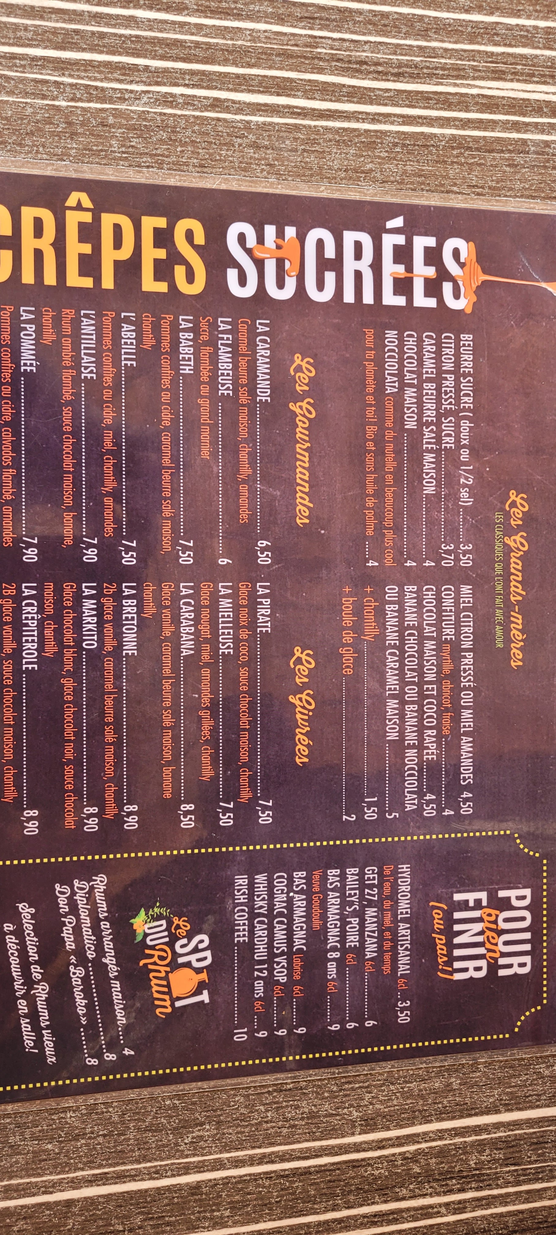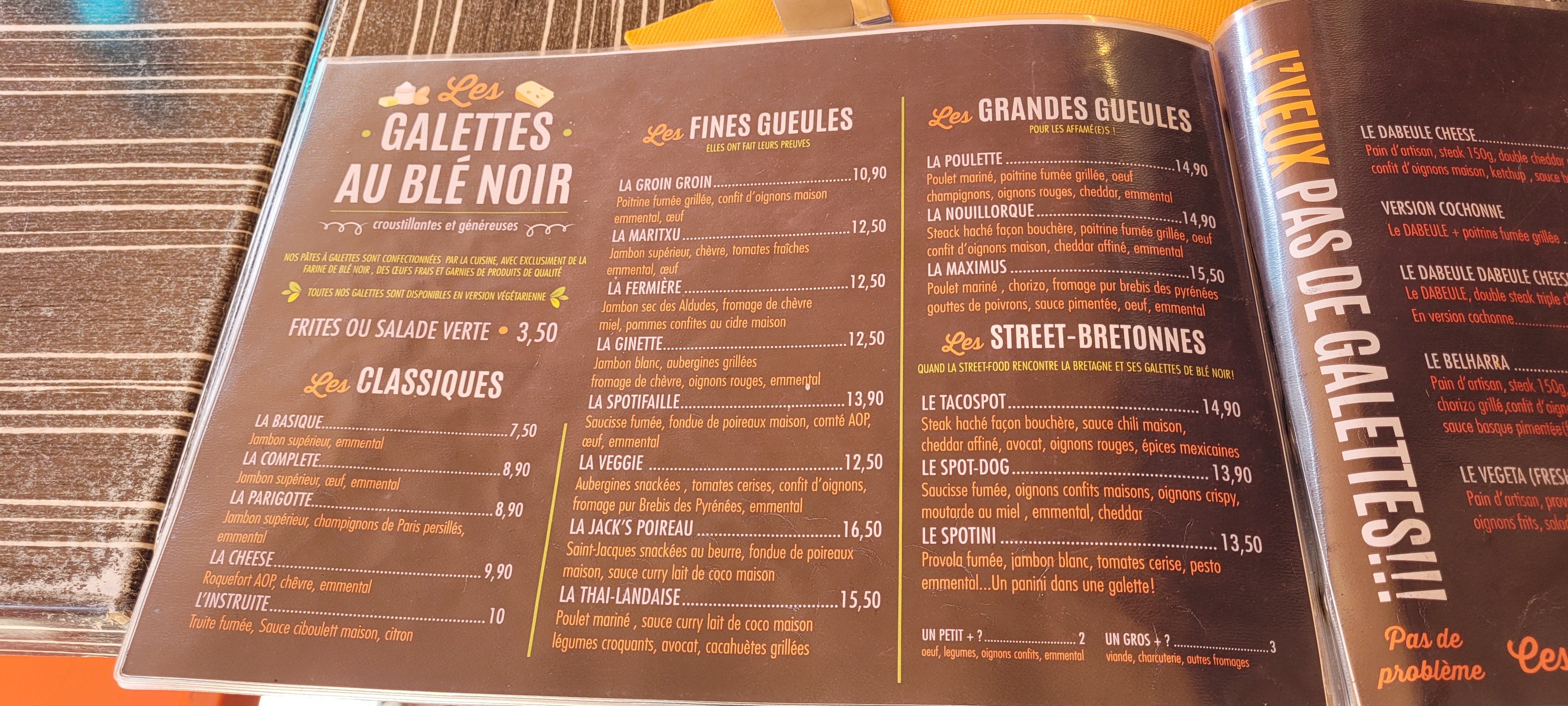 Arrivé à 19 h, nous avons été servi très rapidement. La carte est excellente et pleines de drôleries très appréciables pour l’attente entre les plats. Les crêpes étaient vraiment bonnes et assez copieuses. Je le recommande vivement