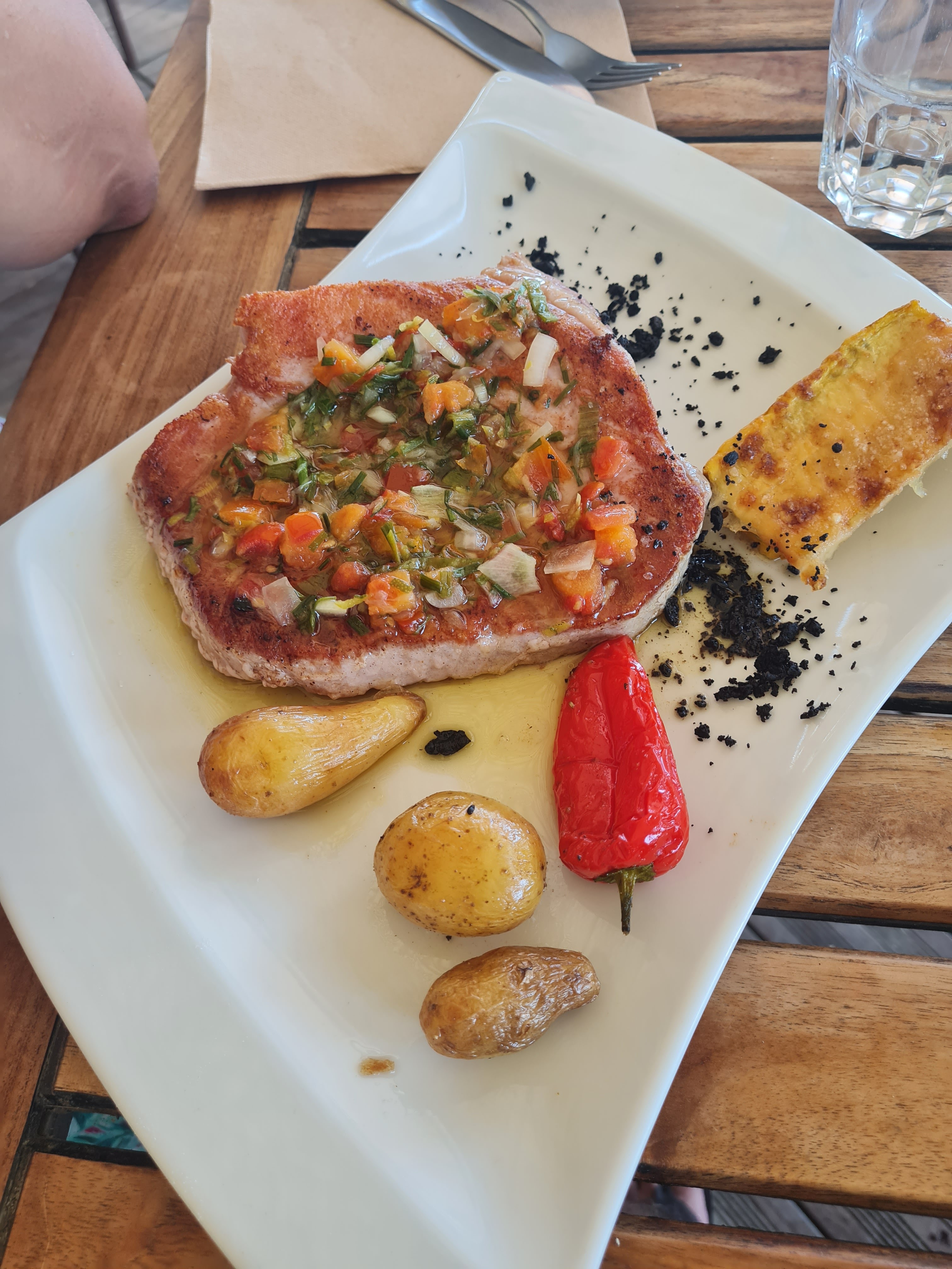 Cadre et personnel sympa. Chipirones insipide malheureusement. Pour nos plats,rien de transcendant mais mangeable. Le tout pas trop donné mais bon,on est sur une paillotte. On reviendra quand même se faire un second avis..
