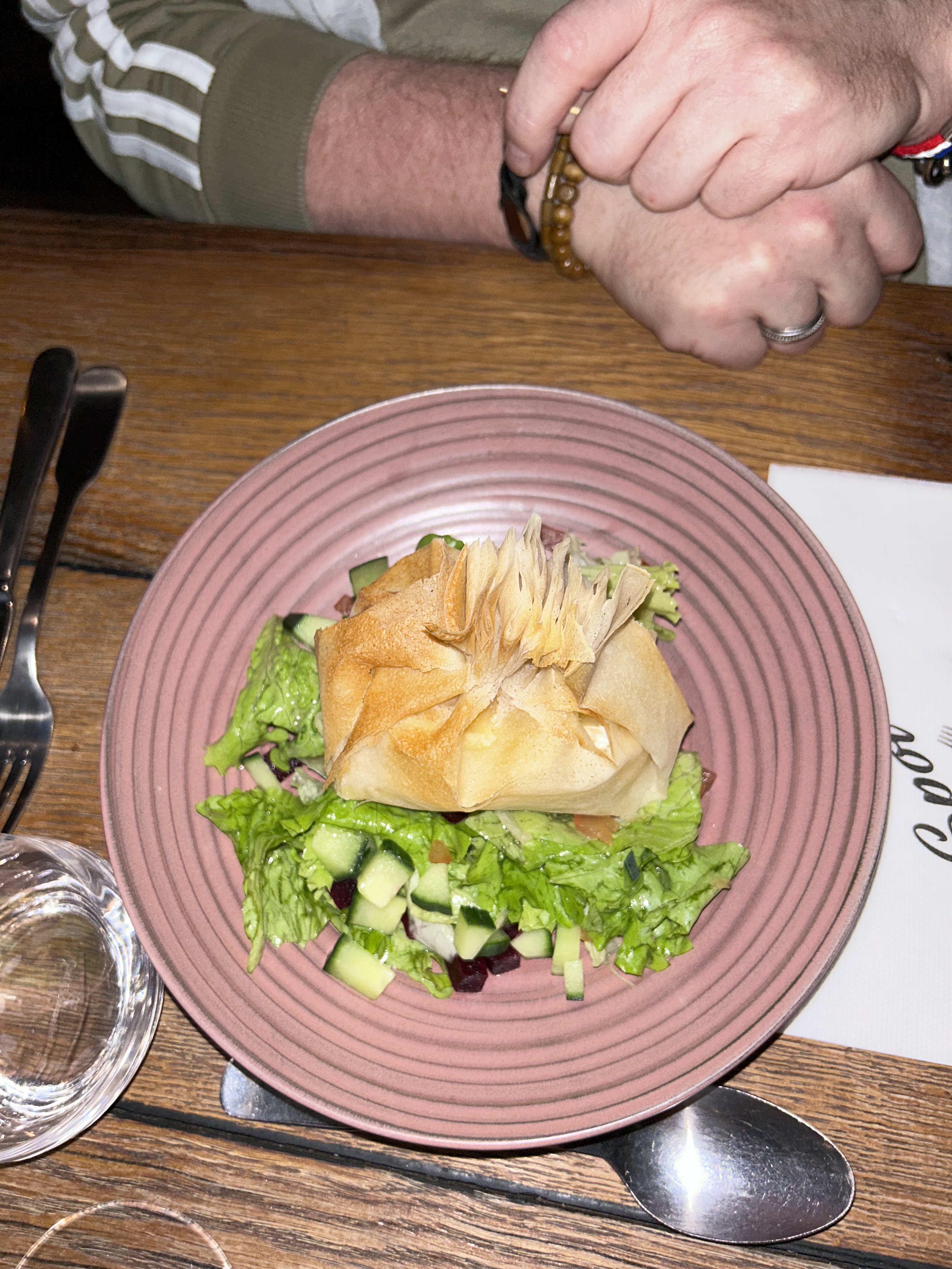 Dans une ambiance agréable (personnellement je n'ai pas aimé les tableaux fixés au mur à vendre, qui n'ont rien à voir avec le cadre), sinon les serveurs sont très attentionnés et la nourriture est bonne ! Bravo.