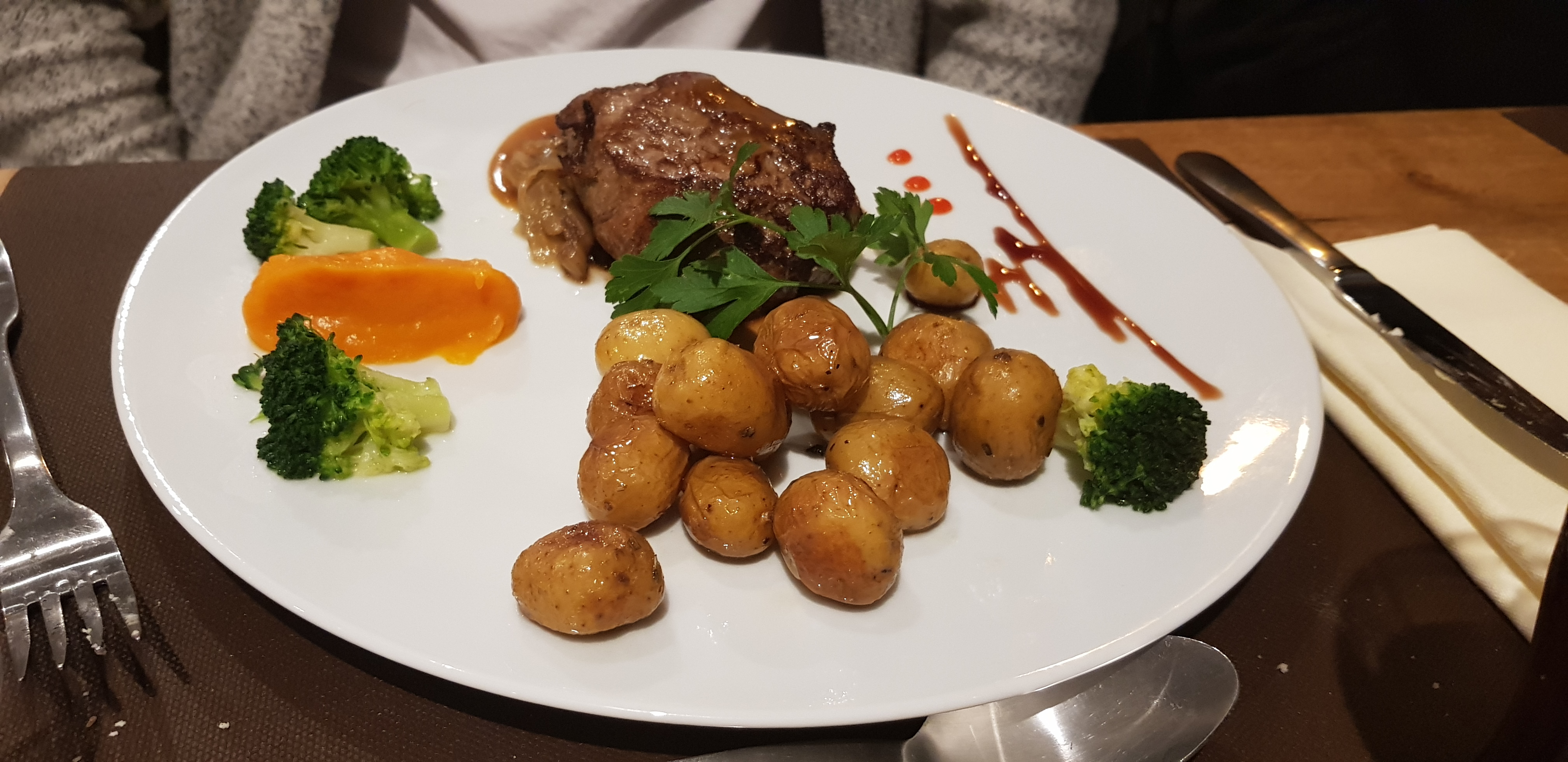 Très bonne cuisine avec d excellentes pièces (viande, poisson( et de belles portions. Recommandé !!