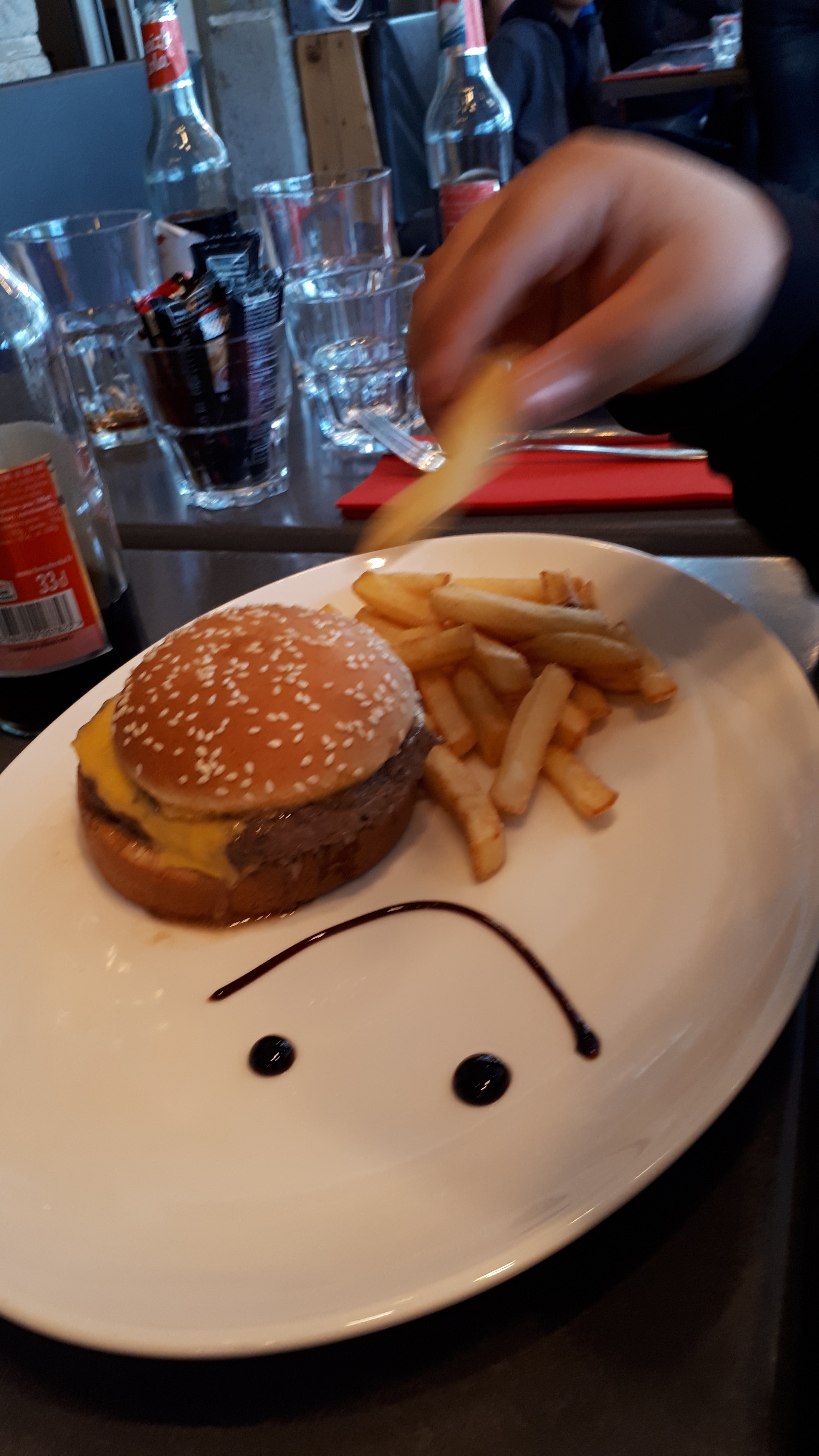 Frites en carton. Le cuisinier devrait revoir sa façon de faire cuire ses frites. Restaurant sans grand intérêt.