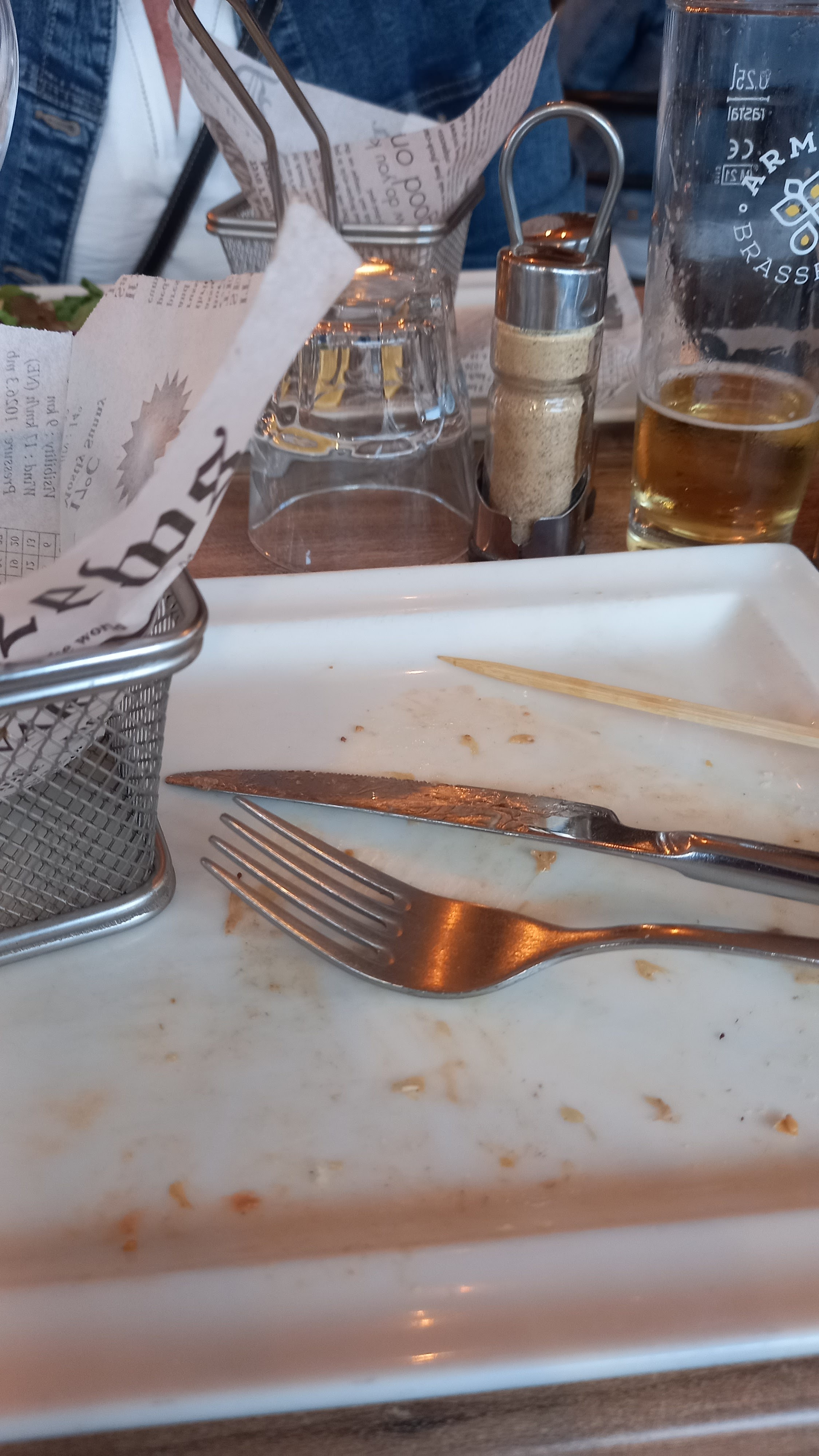 On a commencé sur une note négative par rapport à l'apéro, petite quantité pour des prix qui ont augmenté... et la Pina manquait de goût en jus d'ananas, en coco et en alcool... Par contre, on a fini que sur du positif pour le cheeseburger des enfants, le Burger Breton bien complet et bon à souhait et le fish and chips maison vraiment délicieux...