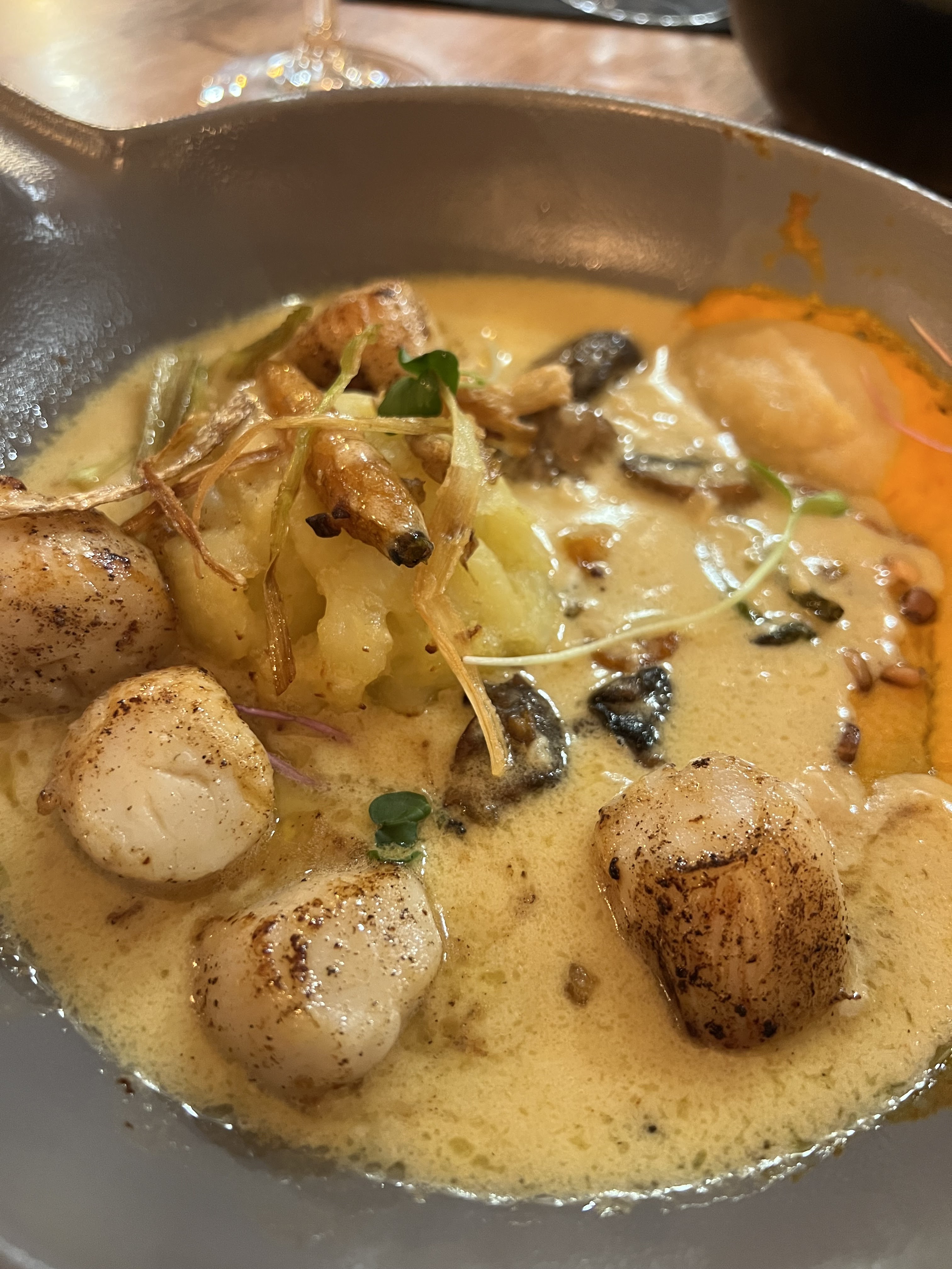 Très belle découverte ! La cuisine est excellente, l'équipe sympathique et la déco très belle. Nous avons pris le plat du jour, saint jacques flambées au whisky avec du riz sauvage, un régal. Les portions auraient pu être un peu plus généreuses il ne faut pas être un gros mangeur. Mais le restaurant propose aussi d'autres plats qui avaient l'air plus copieux. Mention spéciale pour les desserts au top !