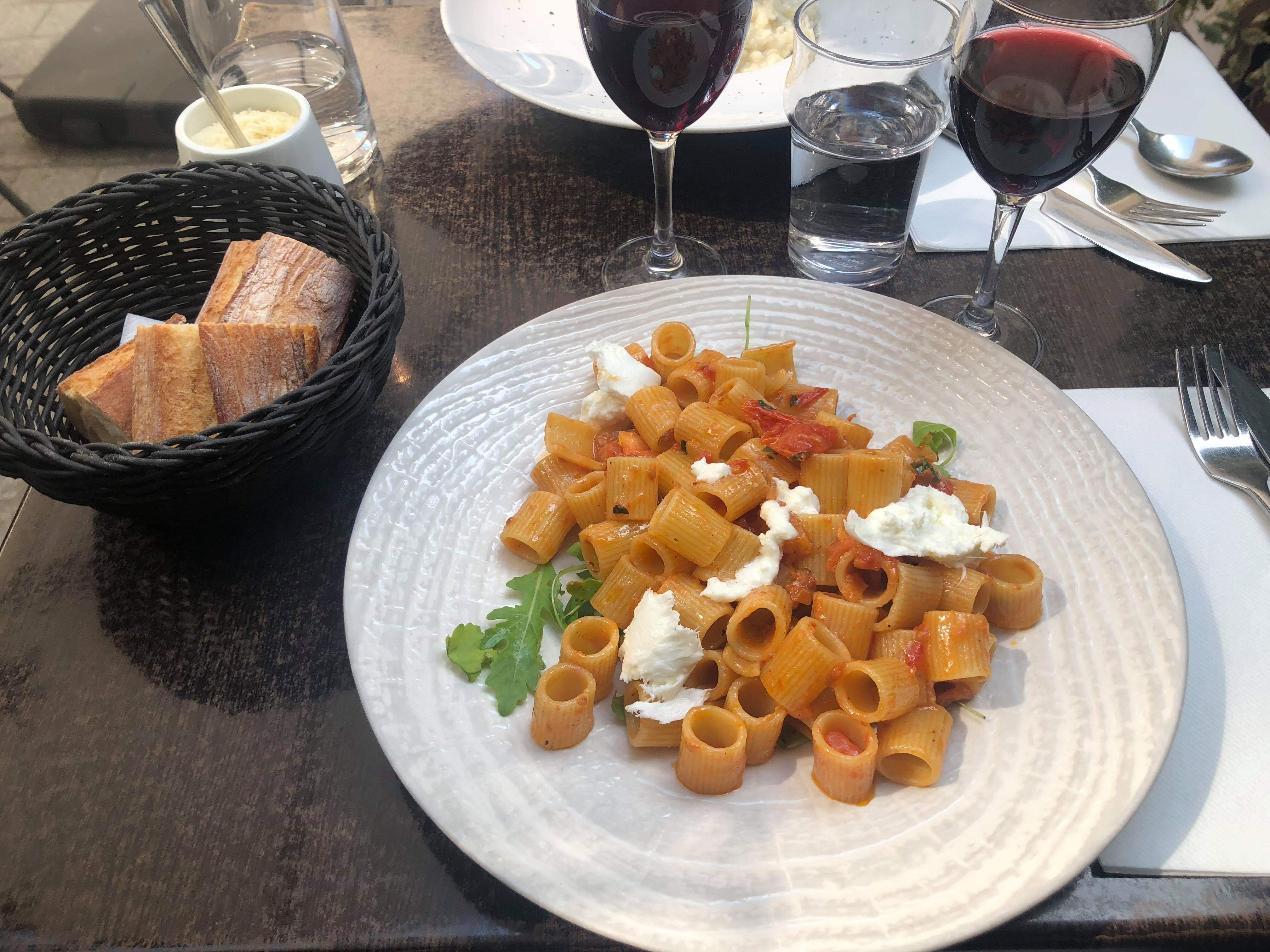 Les plats sont délicieux, le cadre est superbe. Un peu bruyant dans la salle. compter de 17 à 20€ le plat de pâtes mais ce sont des pâtes fraîches et la sauce est faite maison.... et en plein cœur de paris ça se paie.... ;o)