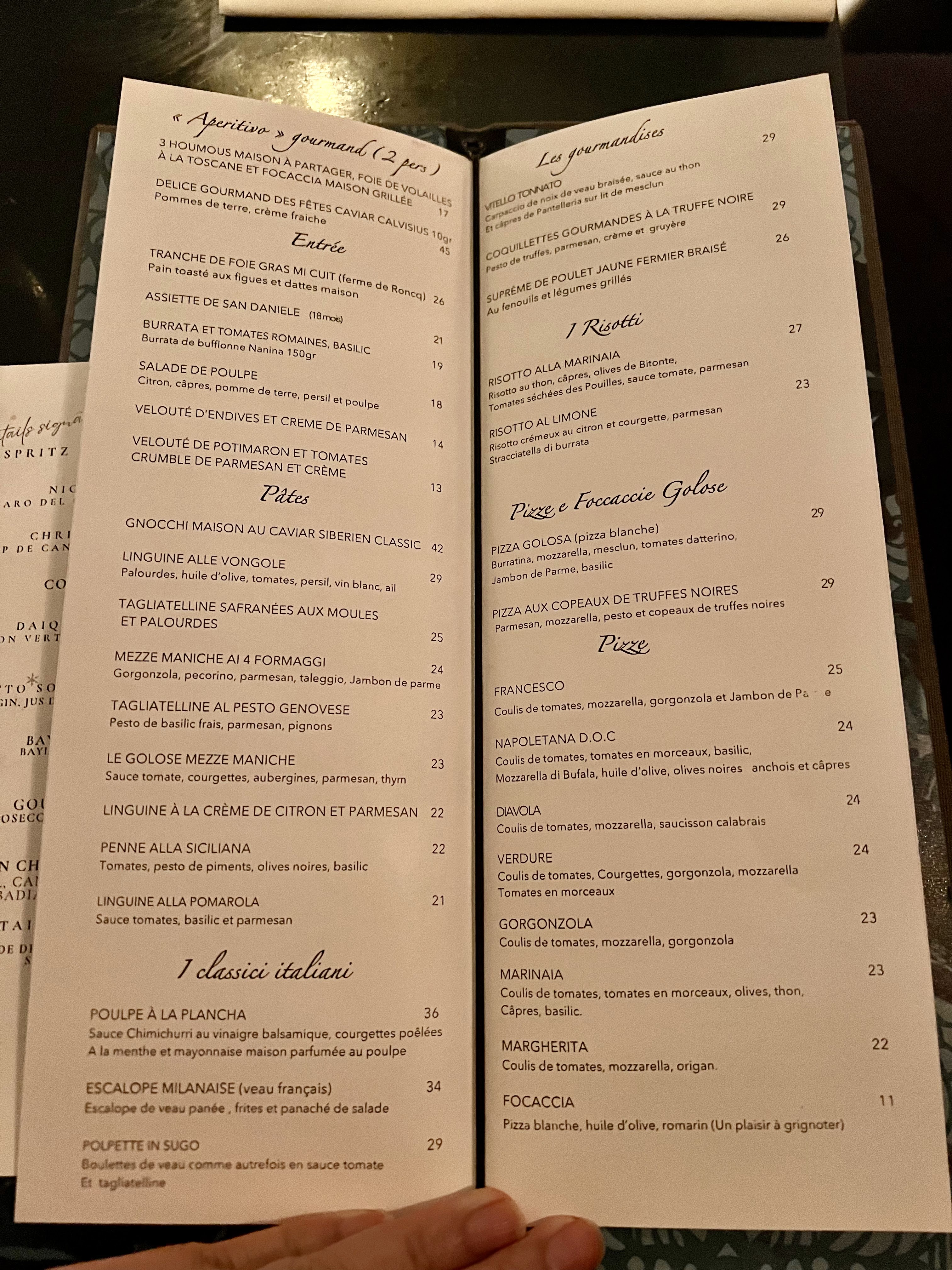 BElle découverte dans le quartier du théâtre Edouard VII, un italien au quantité gigantesque et de qualité. A découvrir