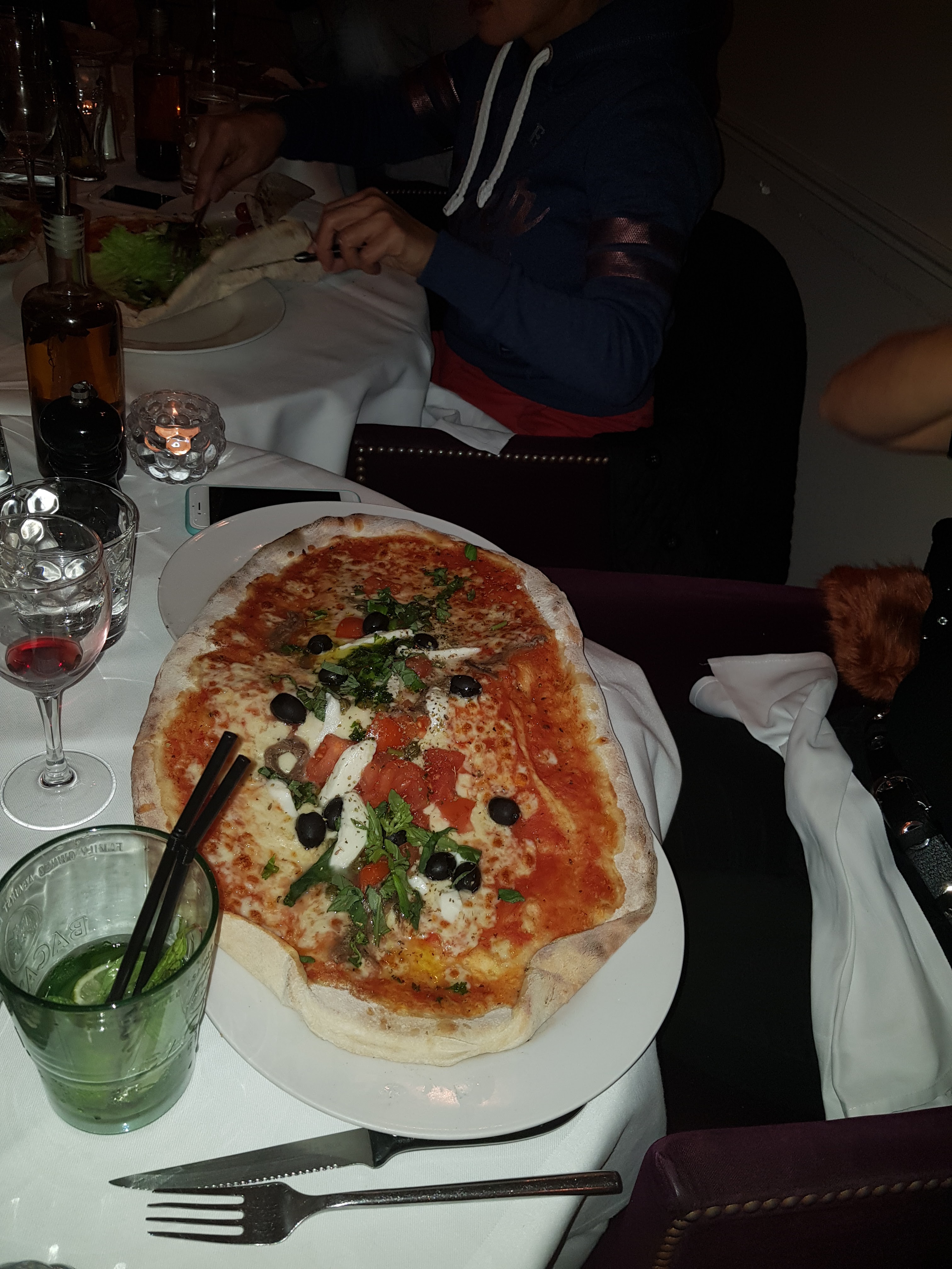 Cadre absolument magnifique, très très bon service (on a tout changé sur nos pizza et on n’a senti aucun agacement, au contraire). C’est effectivement extrêmement cher (compter 25€ la pizza) mais elles sont enormissimes, donc possible de partager. A côté de ça le verre de Chianti est à 6€, donc au final c’est correct. Bref, super dîner.