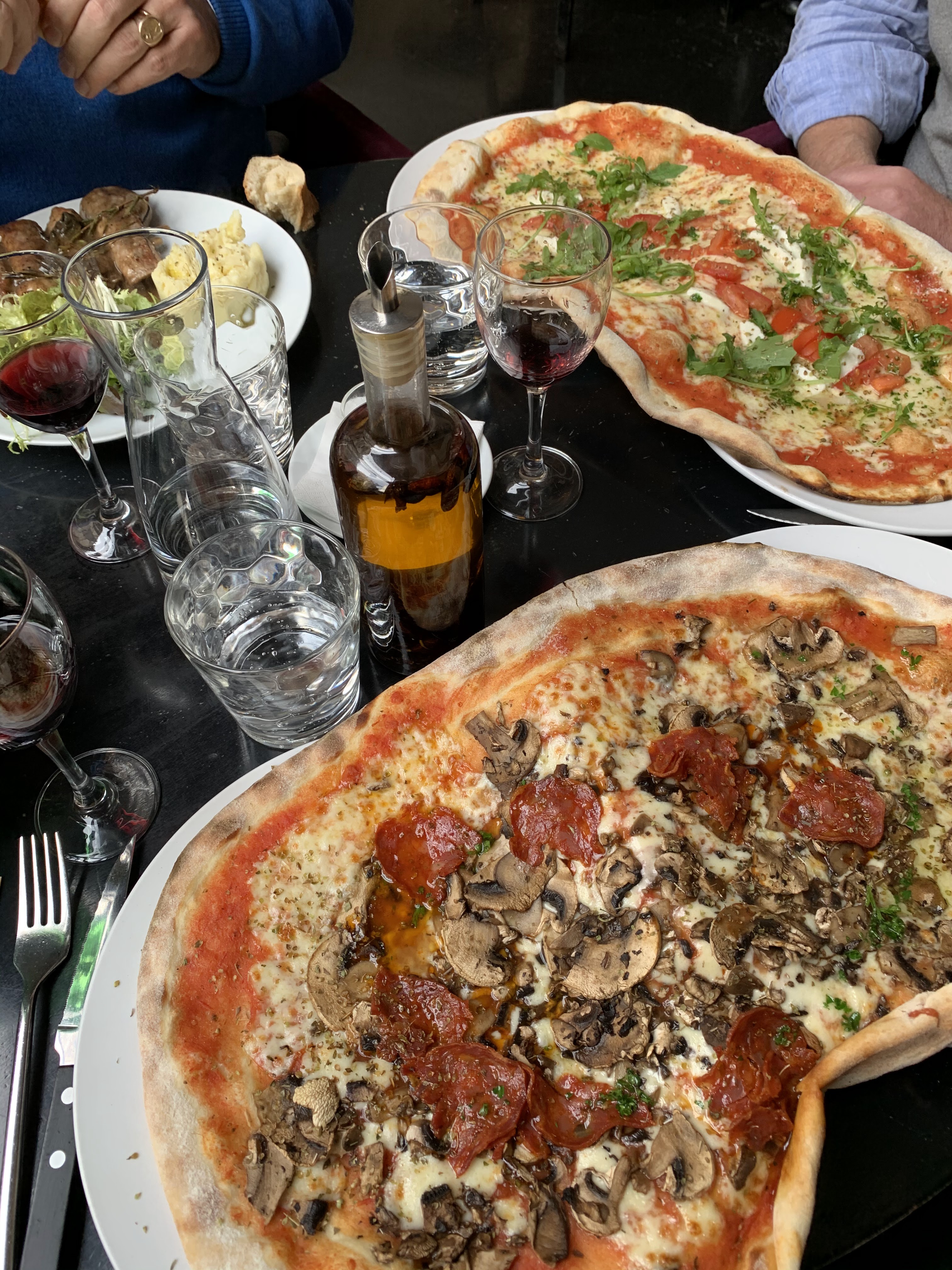 Des pizzas immenses, qu'il faut servir dans 2 assiettes - à tel point que cela en est un peu ridicule. Qu'importe: la pâte est fine, les recettes simples mais bonnes. Alors on pardonnera les prix presque 4 fois plus élevés que ceux de Naples...